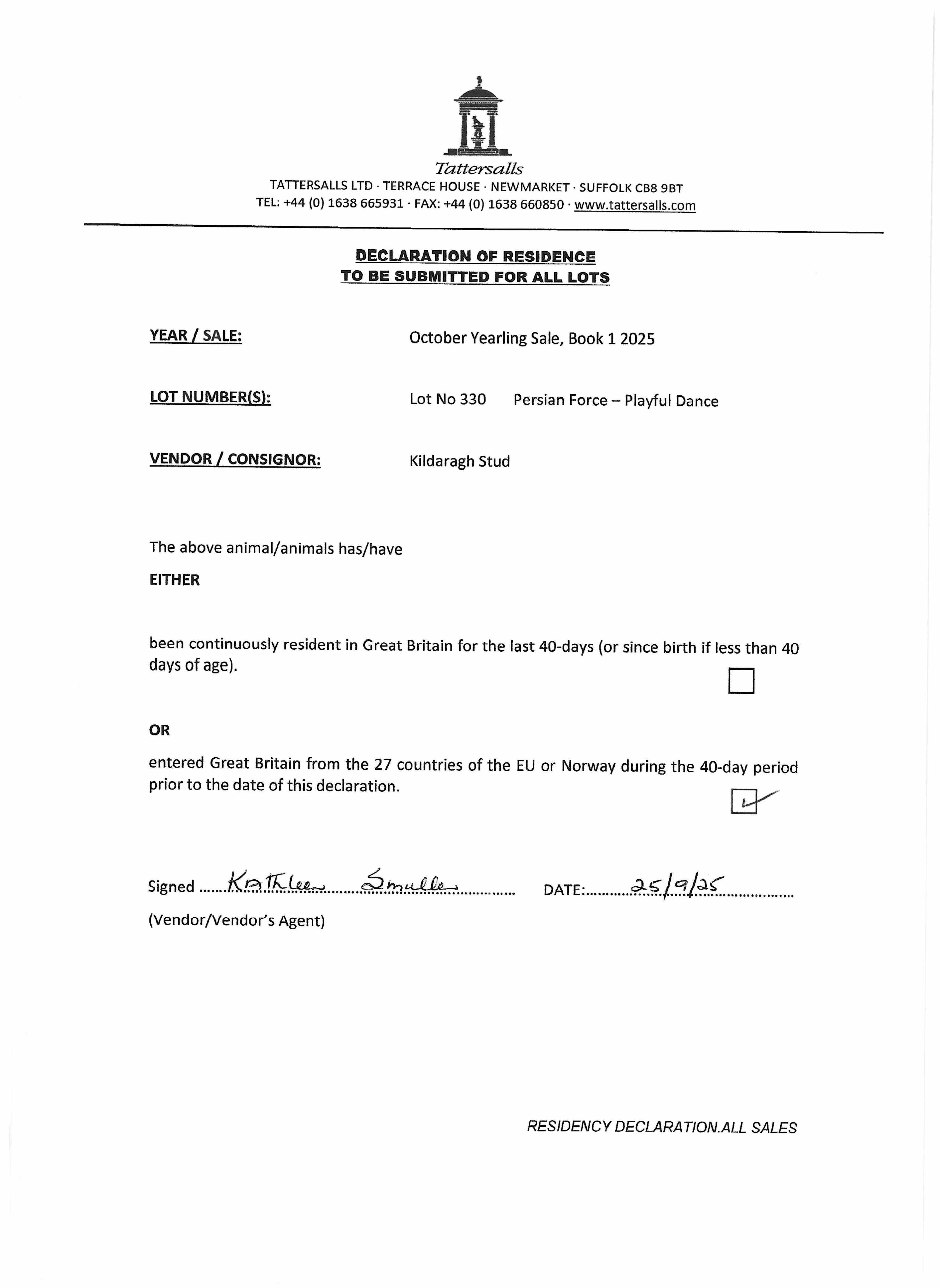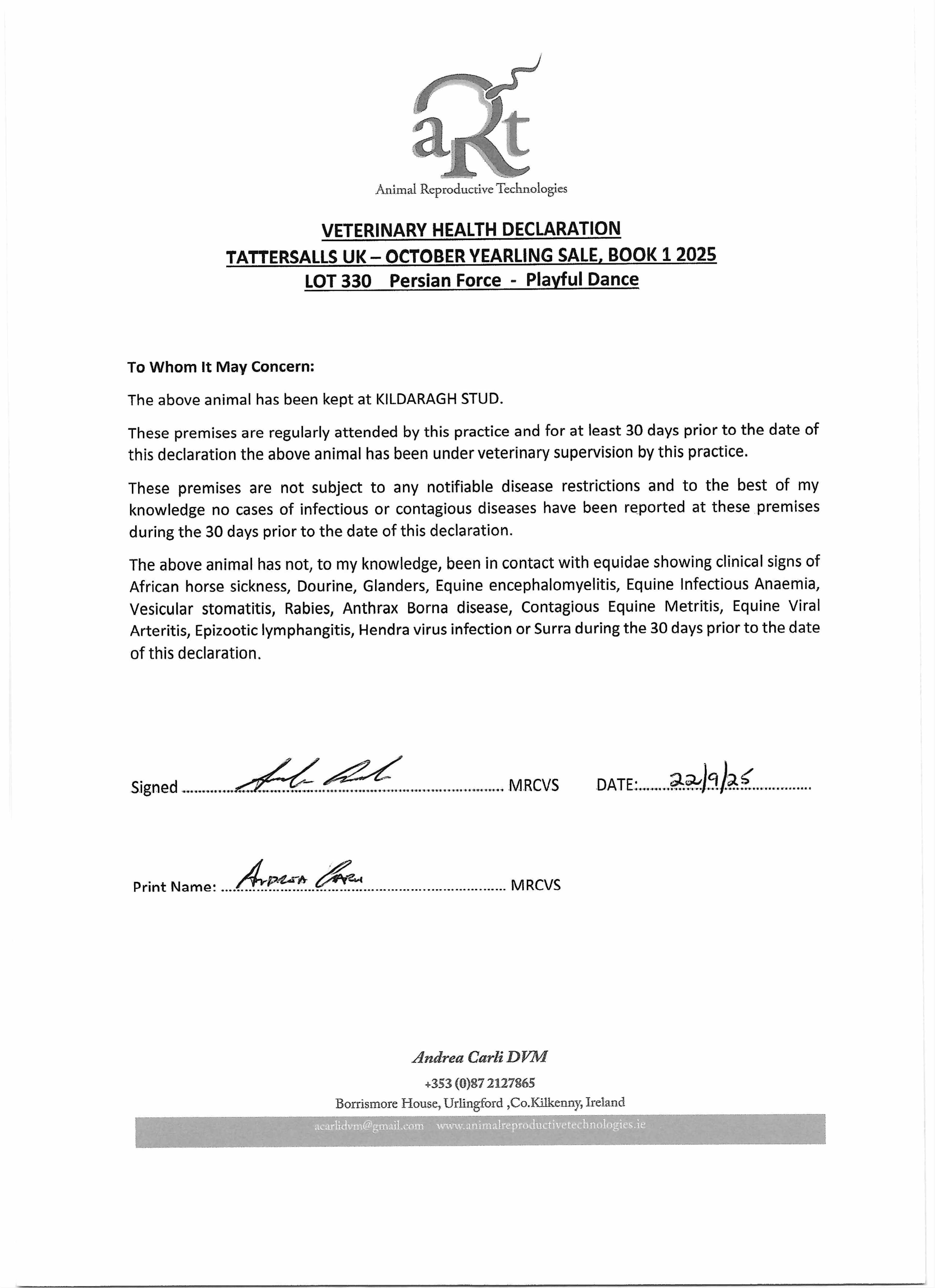 Consignor: Kildaragh Stud, Ireland