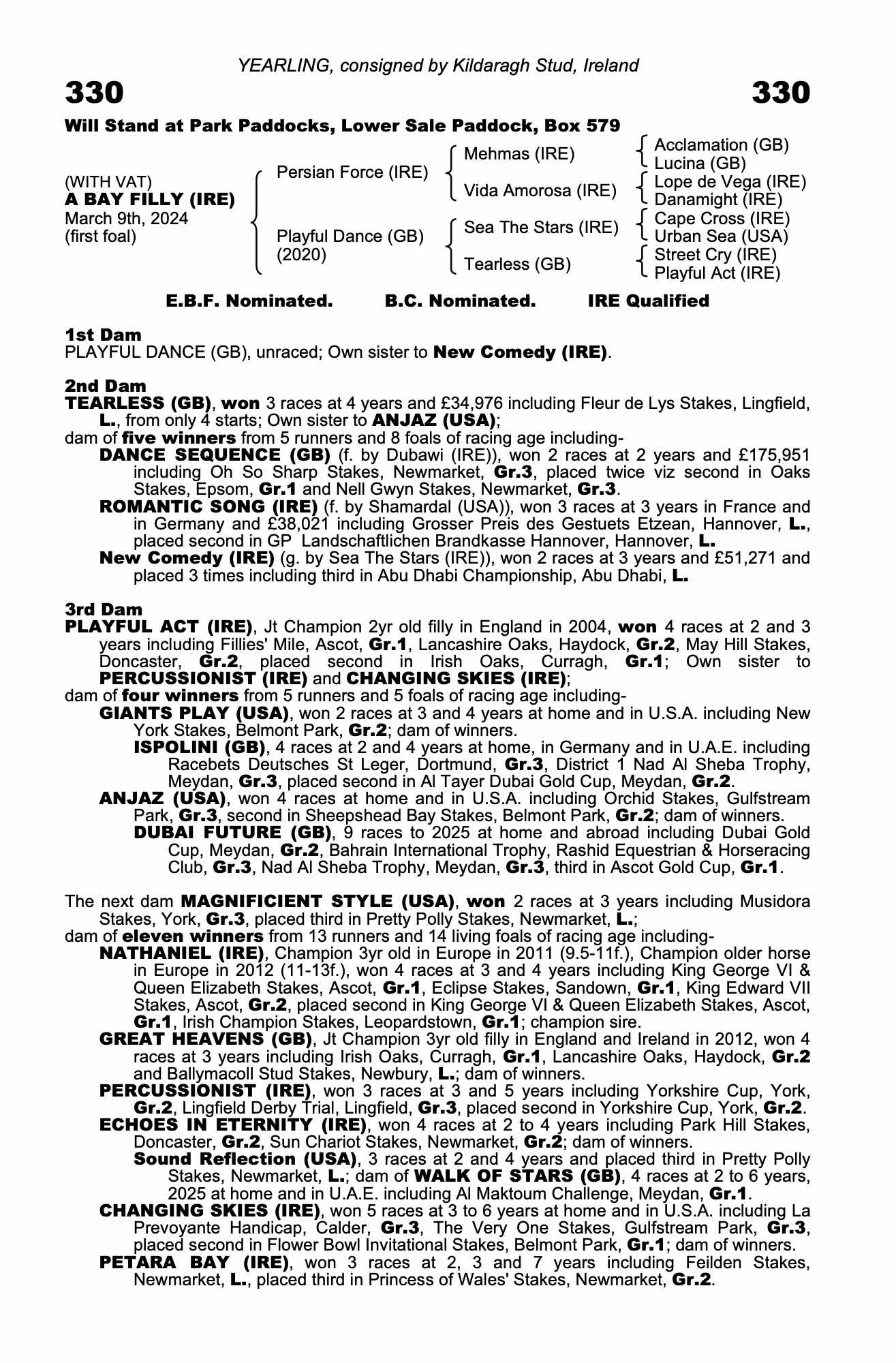 Lot 330 Persian Force (IRE) /Playful Dance (GB) B.F. (IRE)