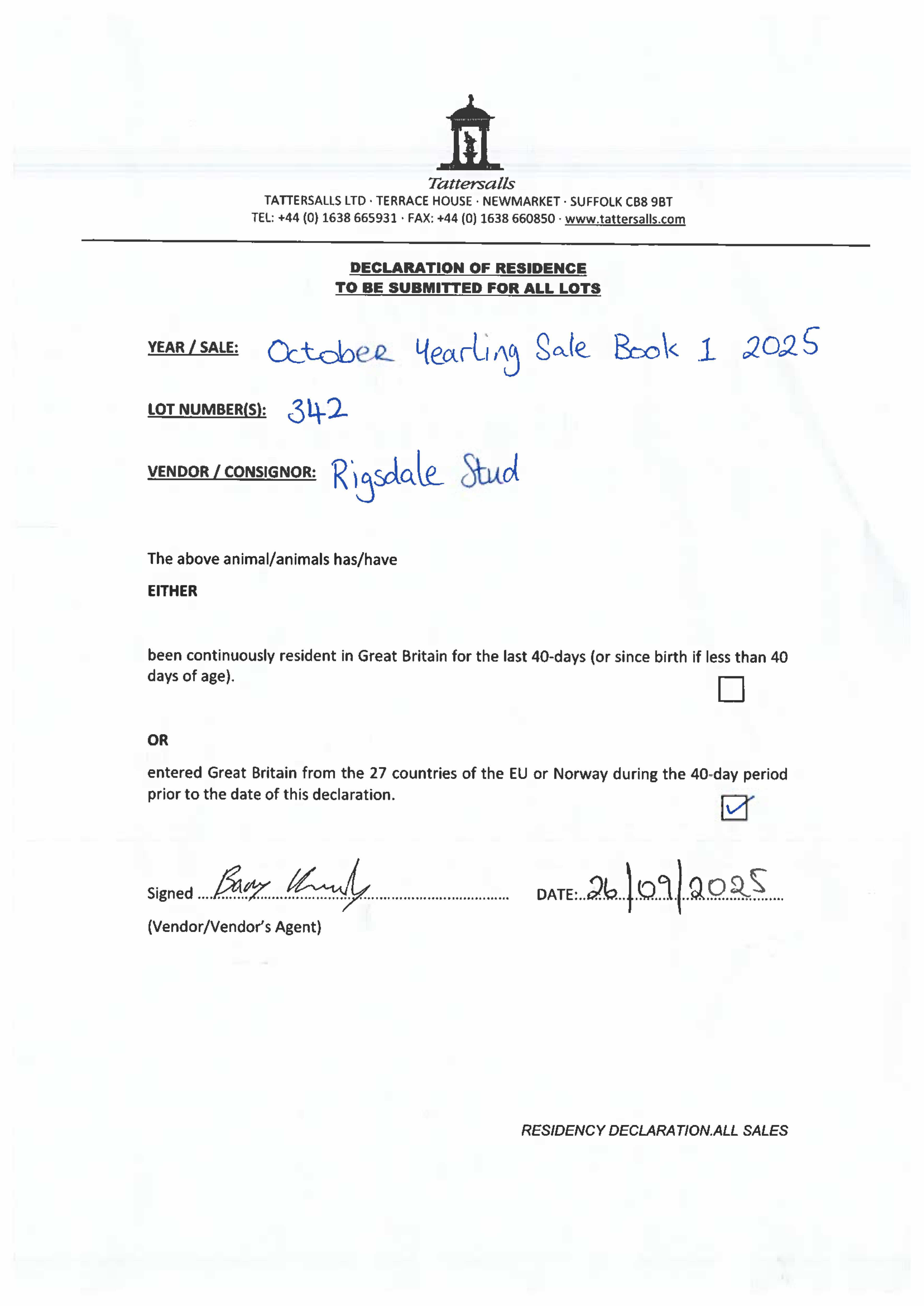Online Sale - 25th October 2024 lot 98 Lucky Queen (IRE) (M. by Aclaim (IRE)), Mr Mudassar Rafiq=>Lot Not Sold 900 gns