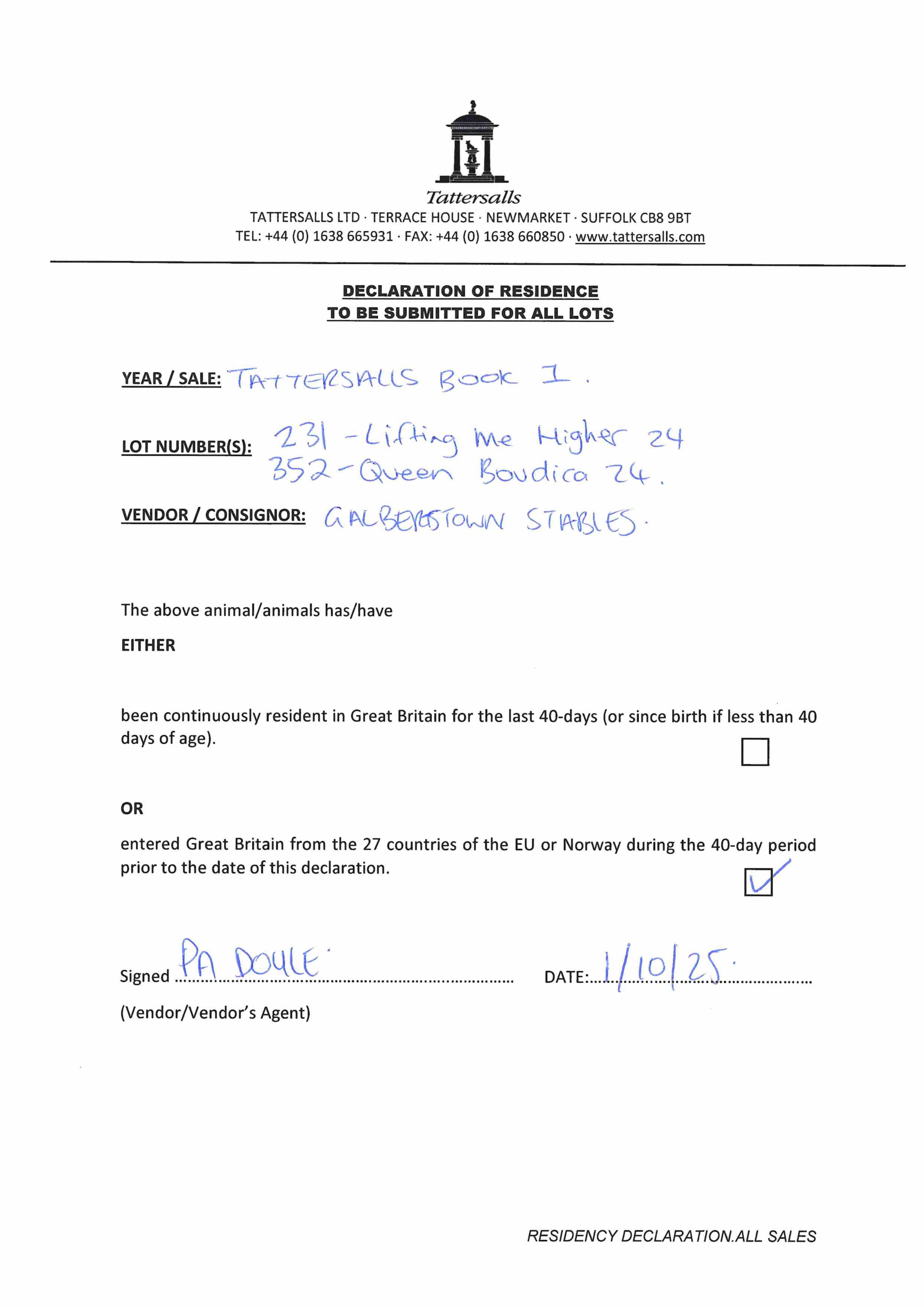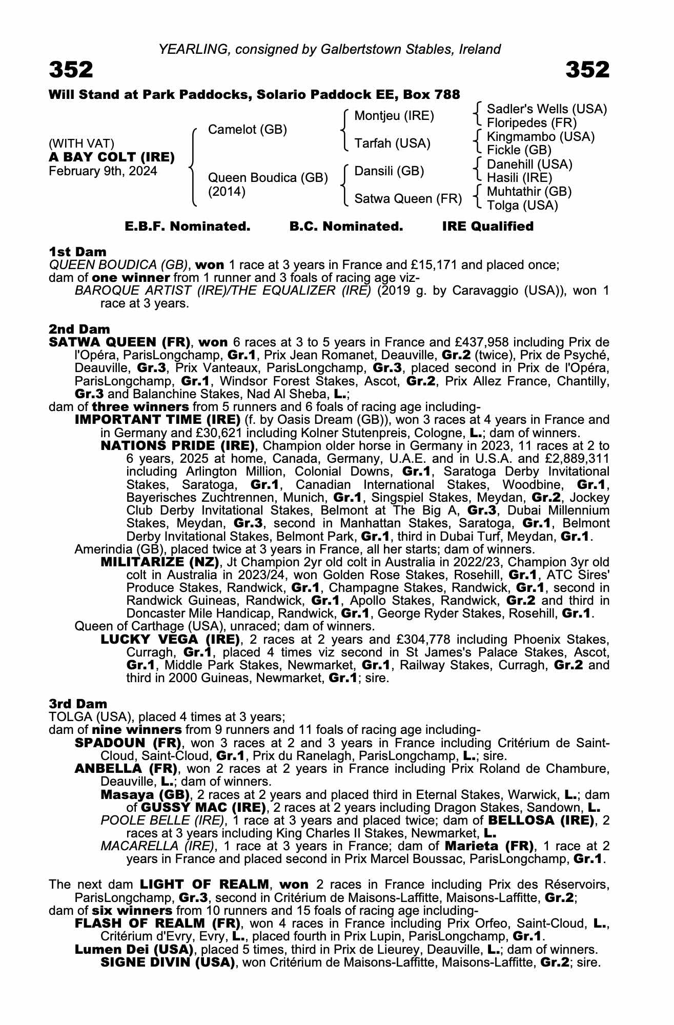 Lot 352 Camelot (GB) /Queen Boudica (GB) B.C. (IRE)
