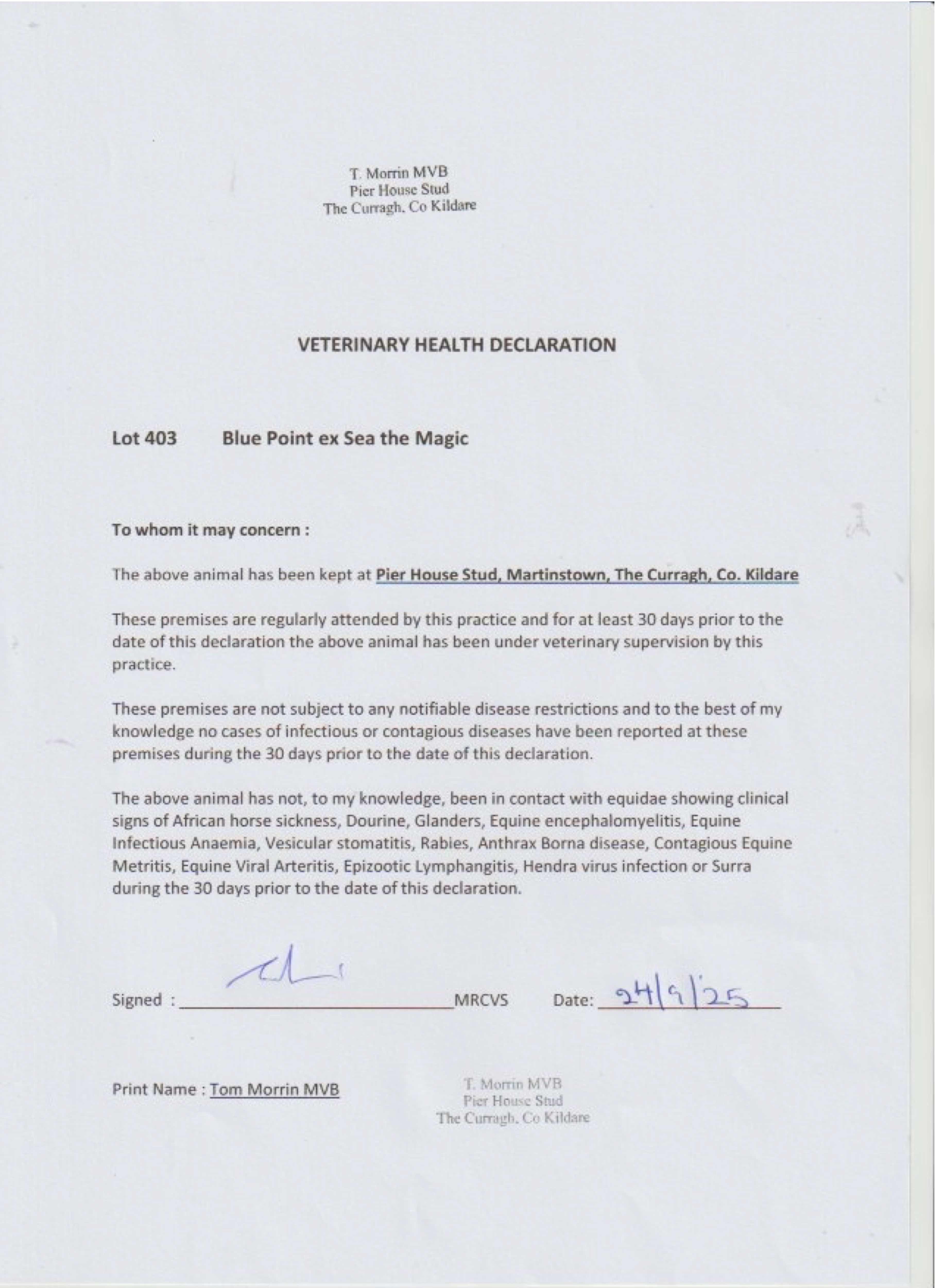 Health Certificate