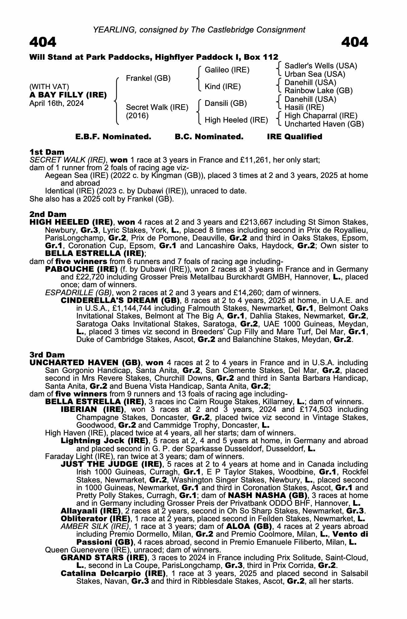 Under 3rd dam, Queen Guenevere (IRE), dam of: GRAND STARS (IRE), placed 3 times including third in Prix Jean Romanet, Deauville, Gr.1.
