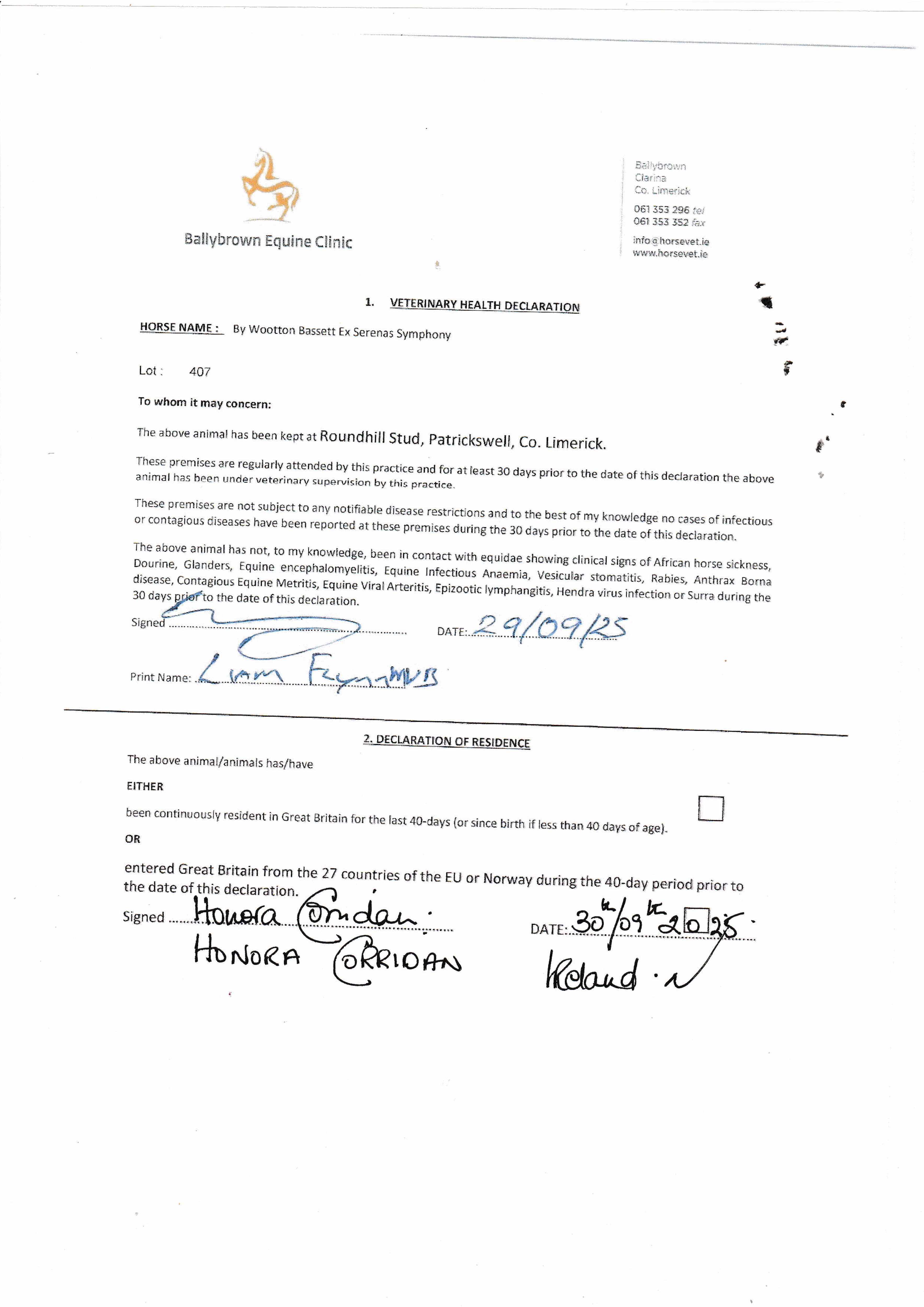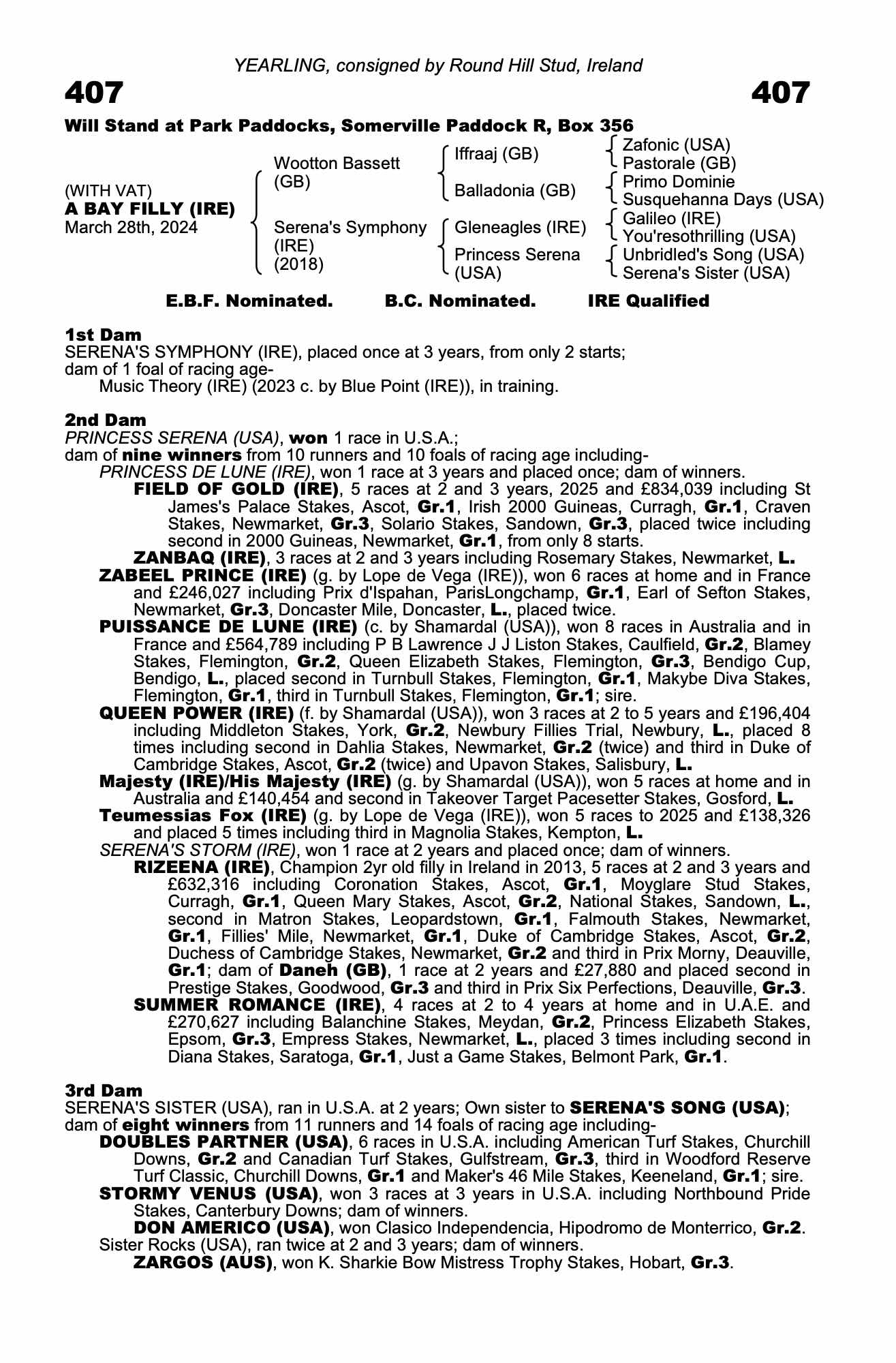 Lot 407 Wootton Bassett (GB) /Serena's Symphony (IRE) B.F. (IRE)