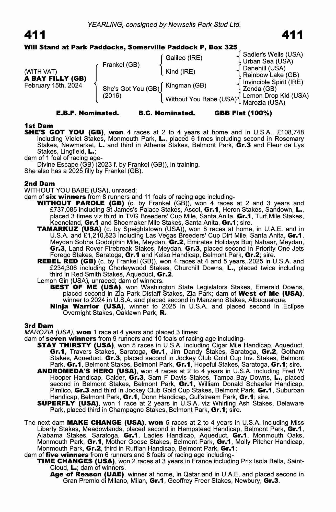 Under 2nd dam: REBEL RED (GB) (c. by Frankel (GB)), placed 3 times and £359,106 including second in Sword Dancer Stakes, Saratoga, Gr.1.