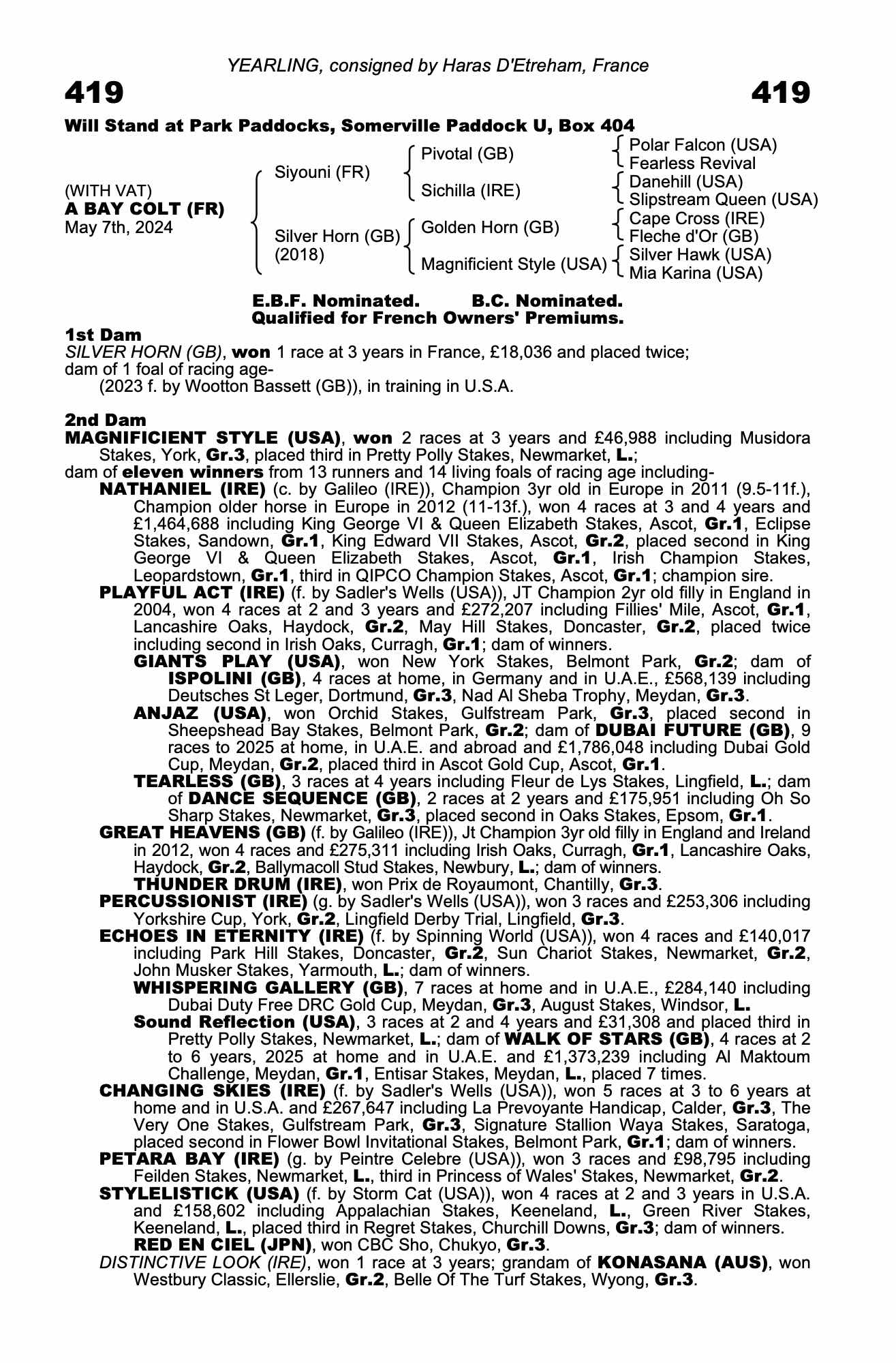 October Yearling Sale, Book 1 2024 lot 419 F. by Wootton Bassett (GB) 2023, Haras D'Etreham, France=>Winstar Farm LLC 325,000 gns