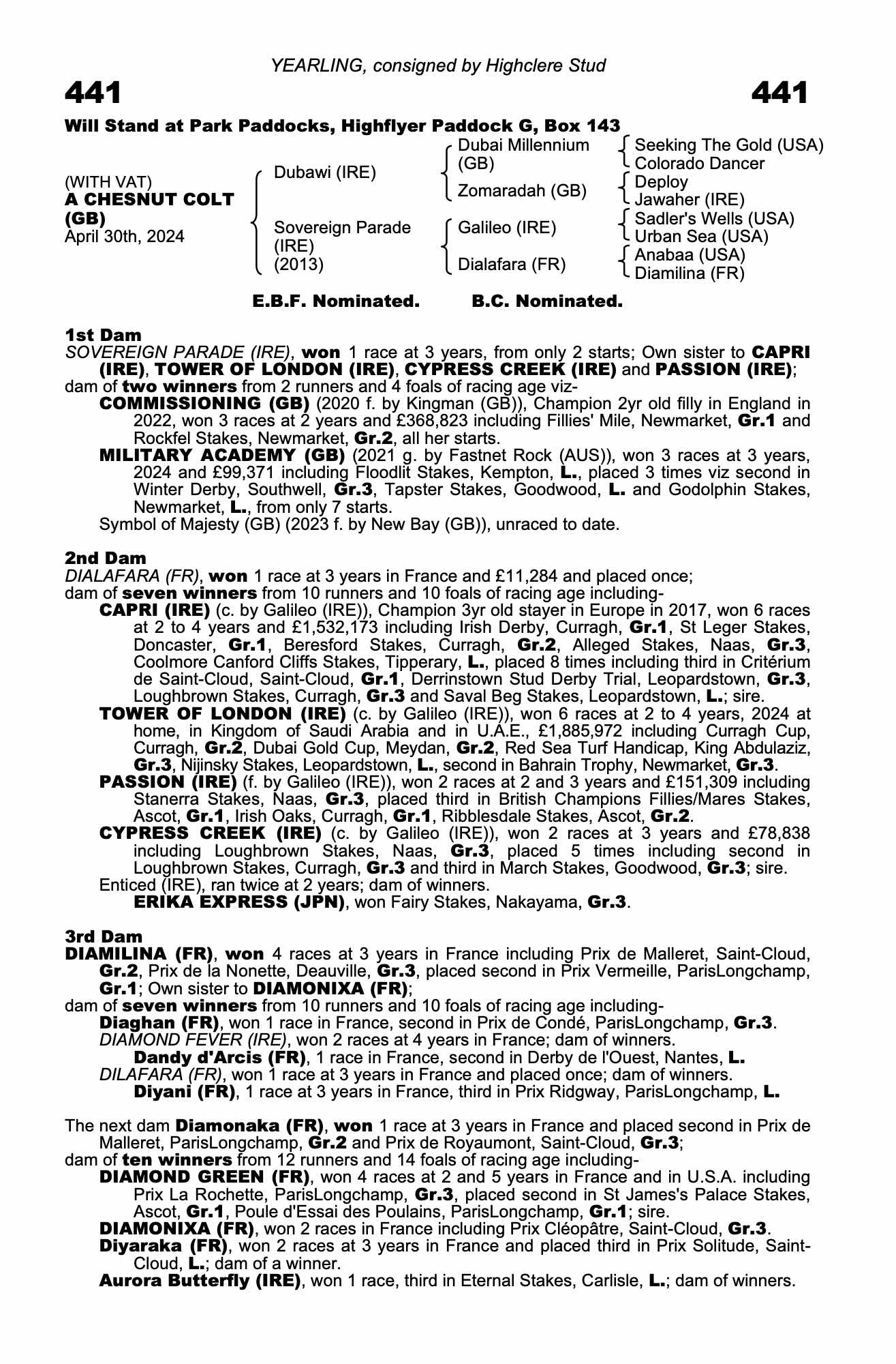 Online Sale - 23rd March 2022 lot 8 Three Oceans (GB) (F. by Fastnet Rock (AUS)), Castle Park Stud=>Highclere Agency 1,800 gns