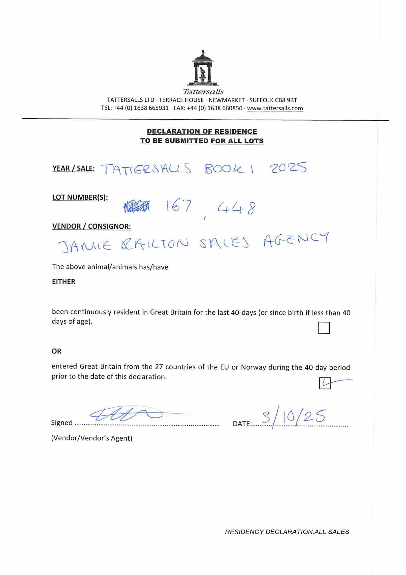 Consignor: Jamie Railton (Agent)