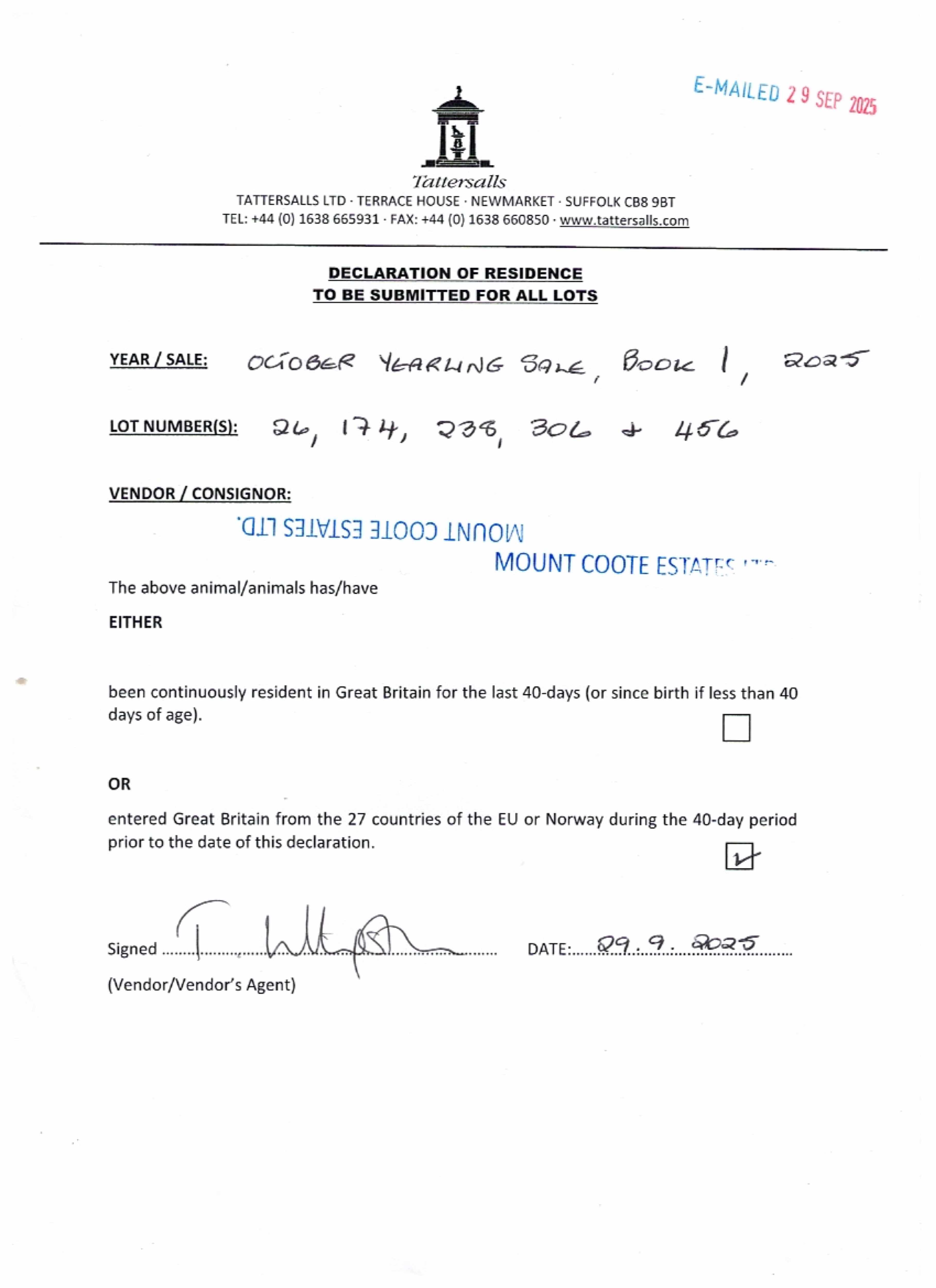 Consignor: Mount Coote Stud, Ireland