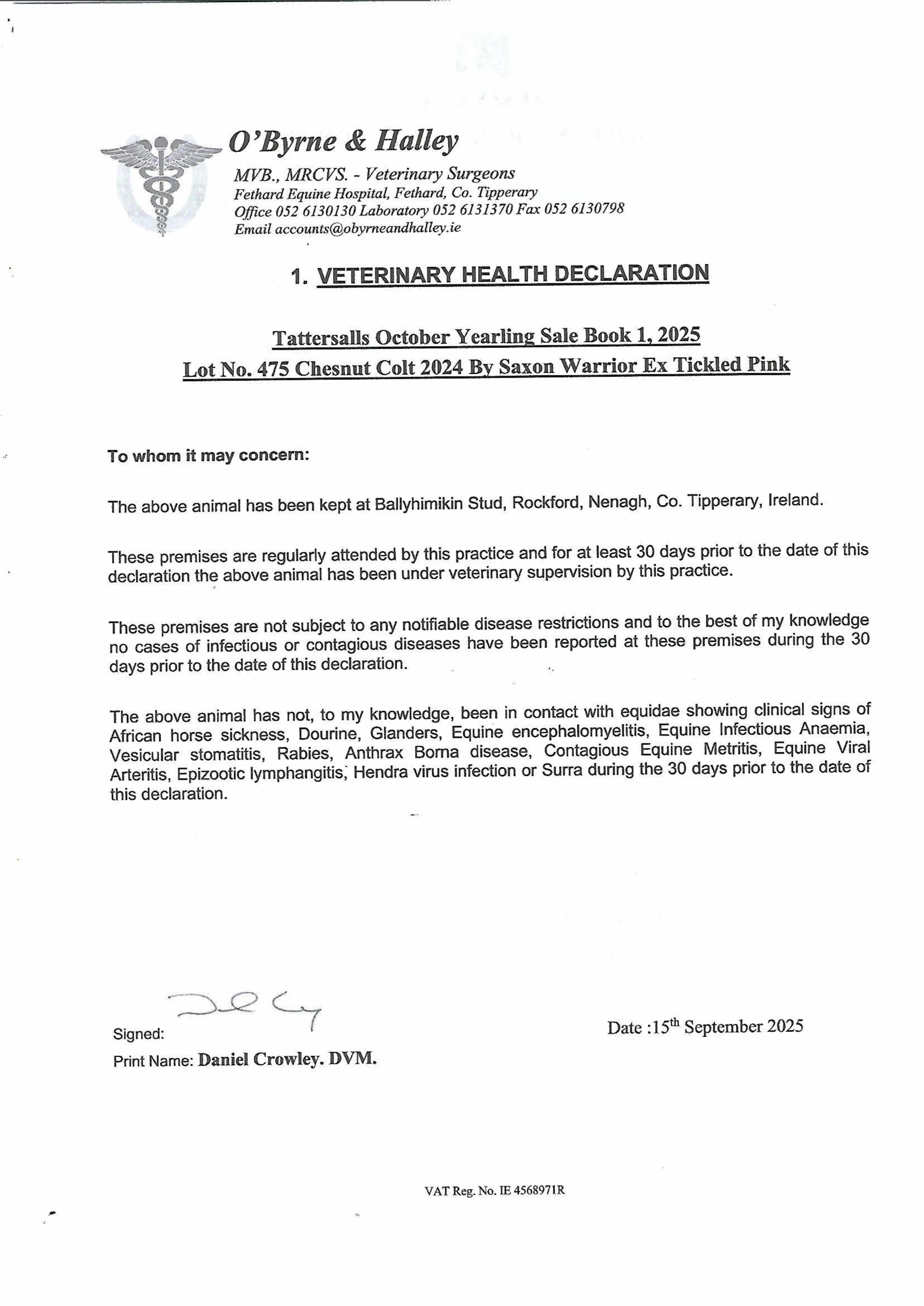 Consignor: Ballyhimikin Stud, Ireland