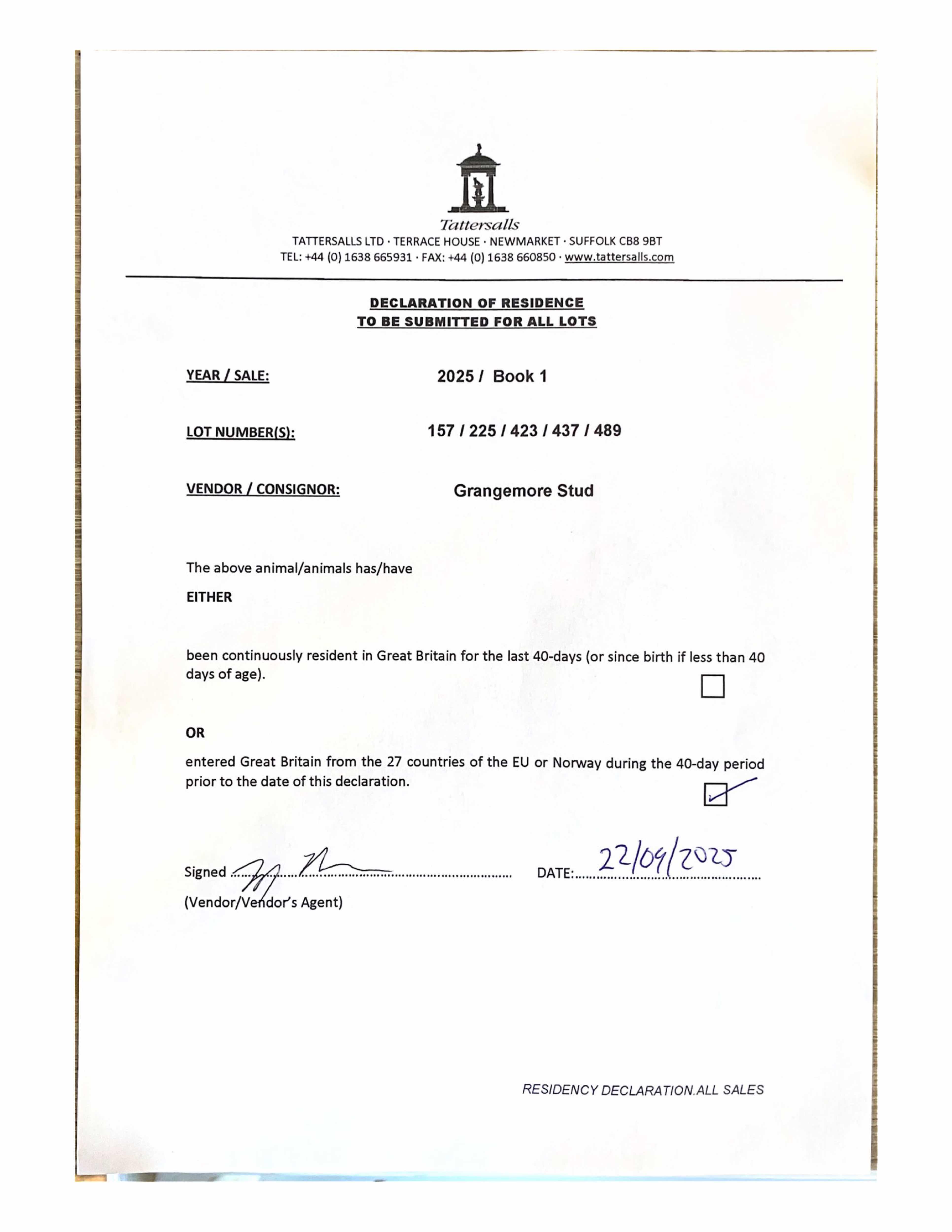 Consignor: Grangemore Stud, Ireland