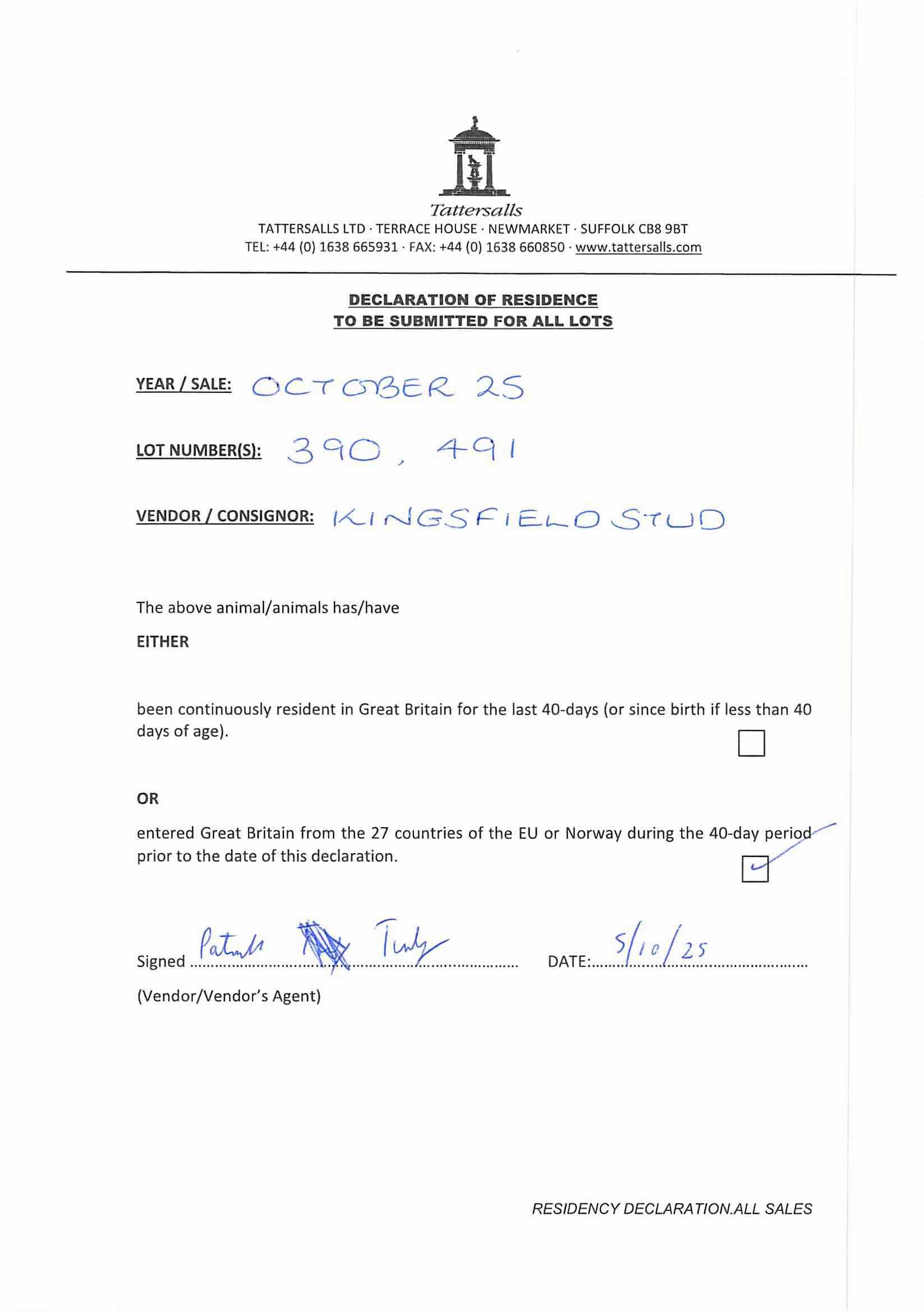 Consignor: Kingsfield Stud
