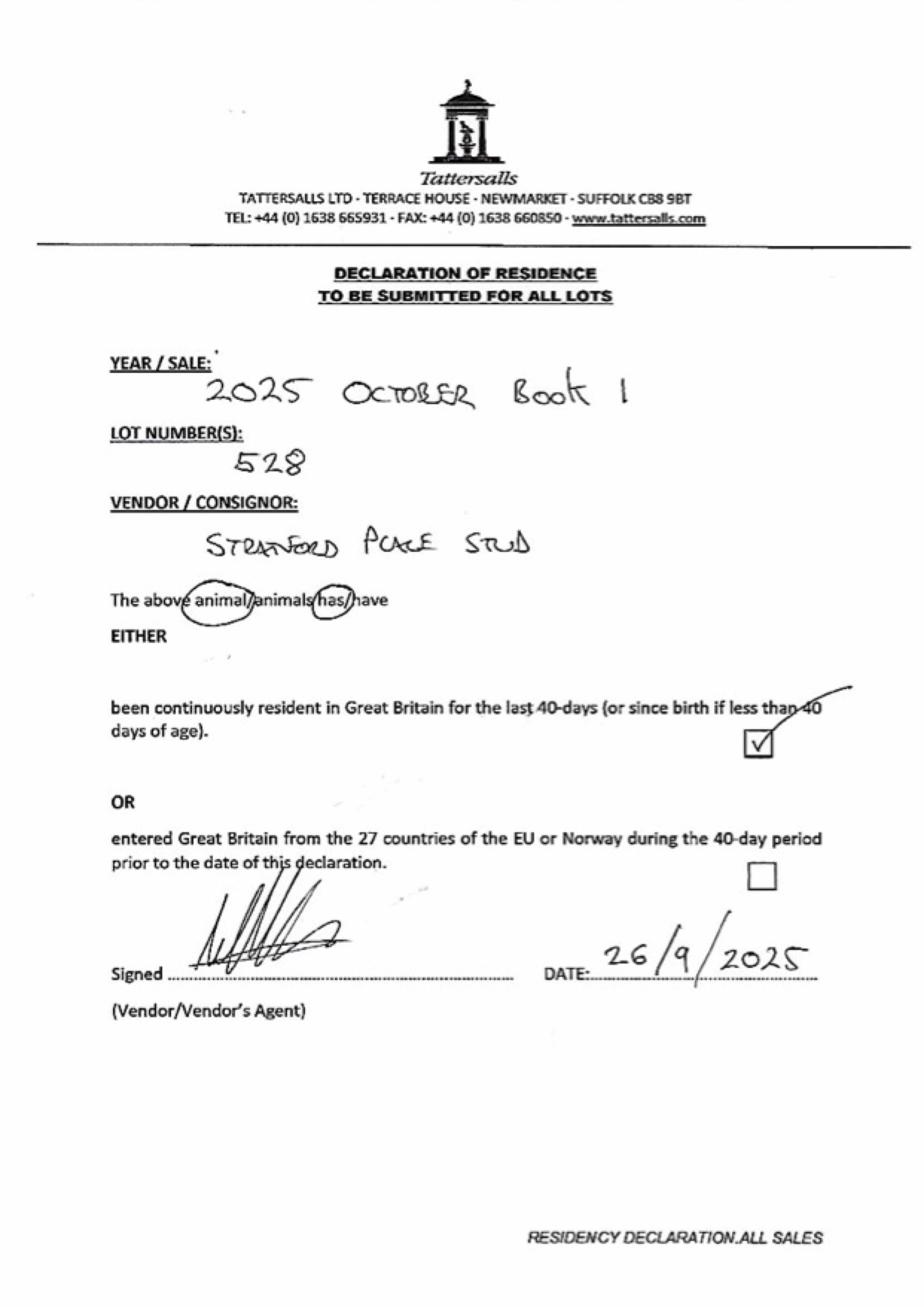 Consignor: Stratford Place Stud