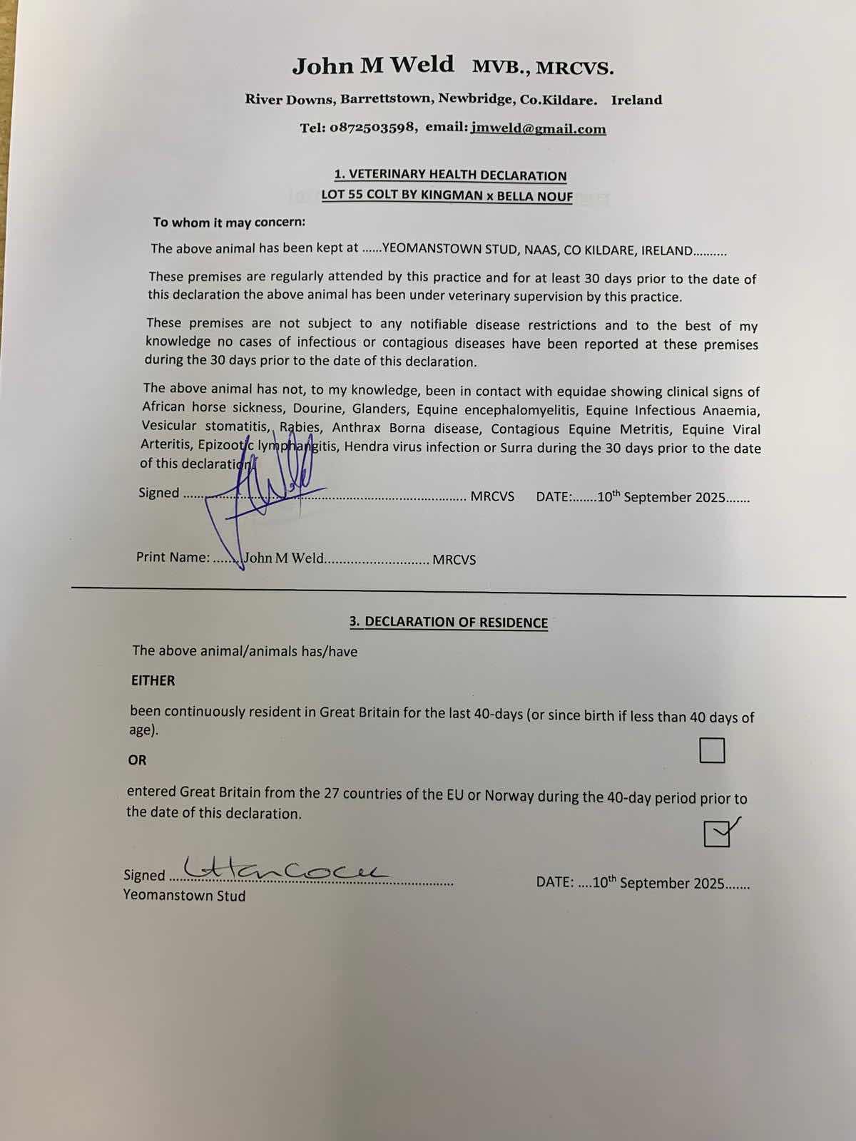 December Foal Sale 2024 lot 951, Tweenhills Farm & Stud=>Yeomanstown Stud 200,000 gns