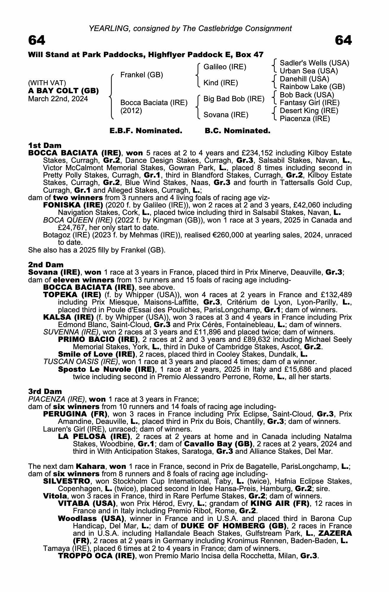 Saturday 4 October:  Half-sister BOCA QUEEN (IRE), won 1 race at 3 years, 2025 in Canada, also fourth in Ontario Colleen Stakes, Woodbine, Gr.3 and Toronto Cup Stakes, Woodbine, L., all her starts.