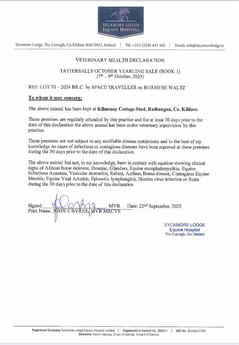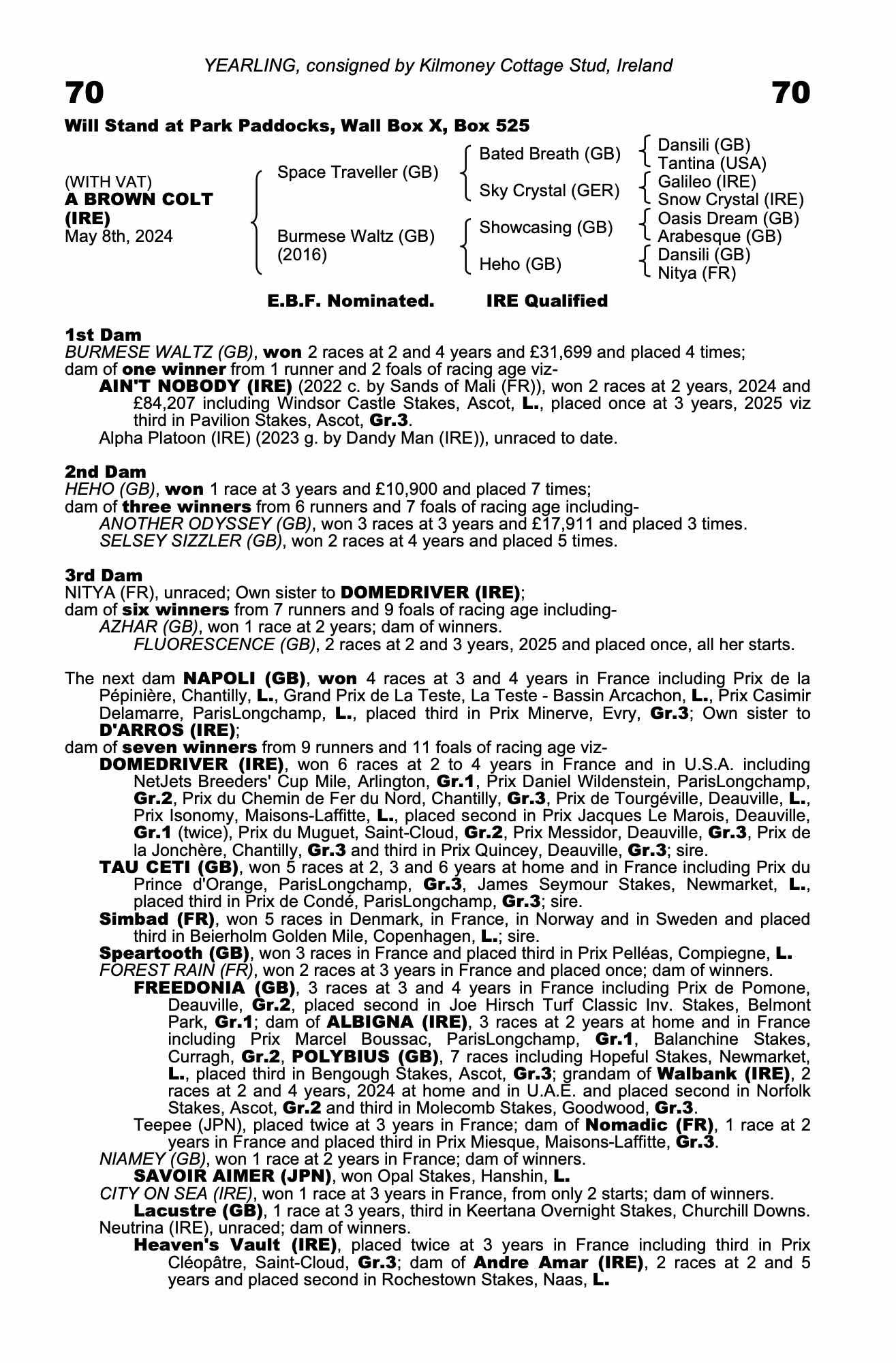 Lot 70 Space Traveller (GB) /Burmese Waltz (GB) Br.C. (IRE)
