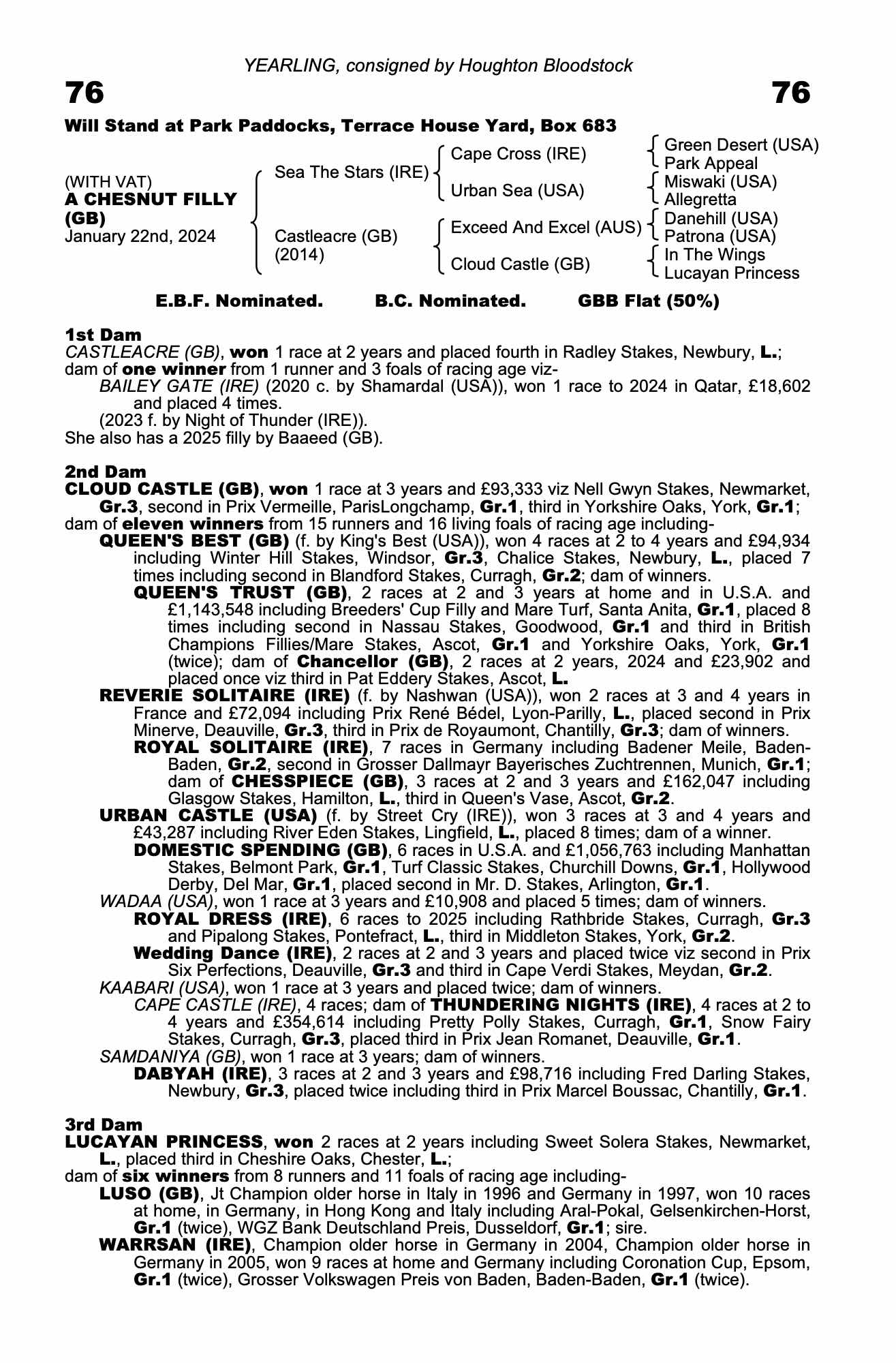 Lot 76 Sea The Stars (IRE) /Castleacre (GB) Ch.F. (GB)