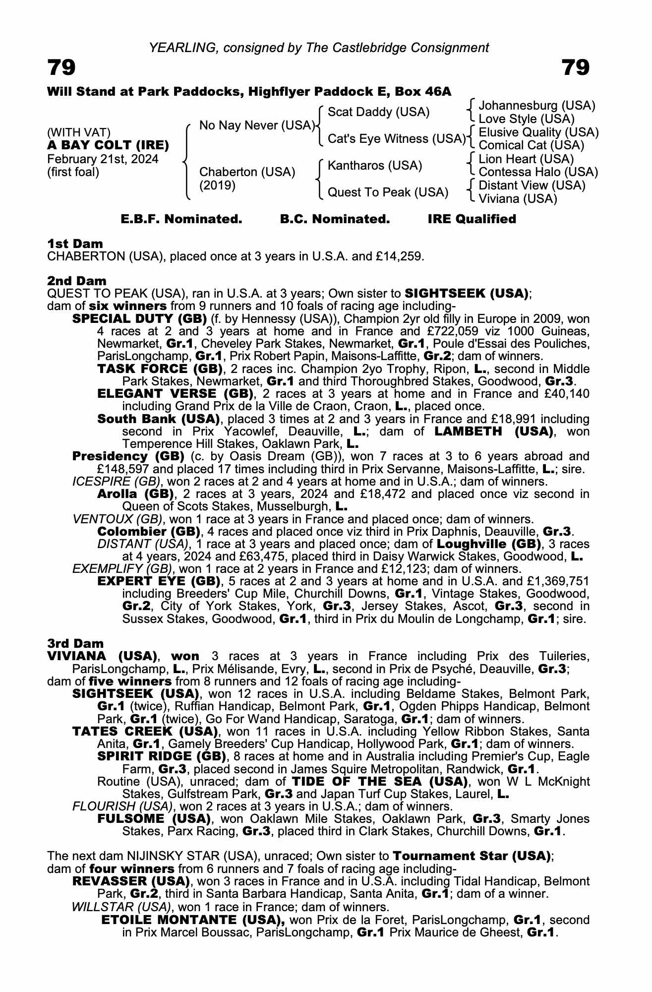 Under 3rd dam, SIGHTSEEK (USA), dam of Romanticism (USA): ; dam of IMAGINATIONTHELADY (USA), won Jessamine Stakes, Keeneland, Gr.2.