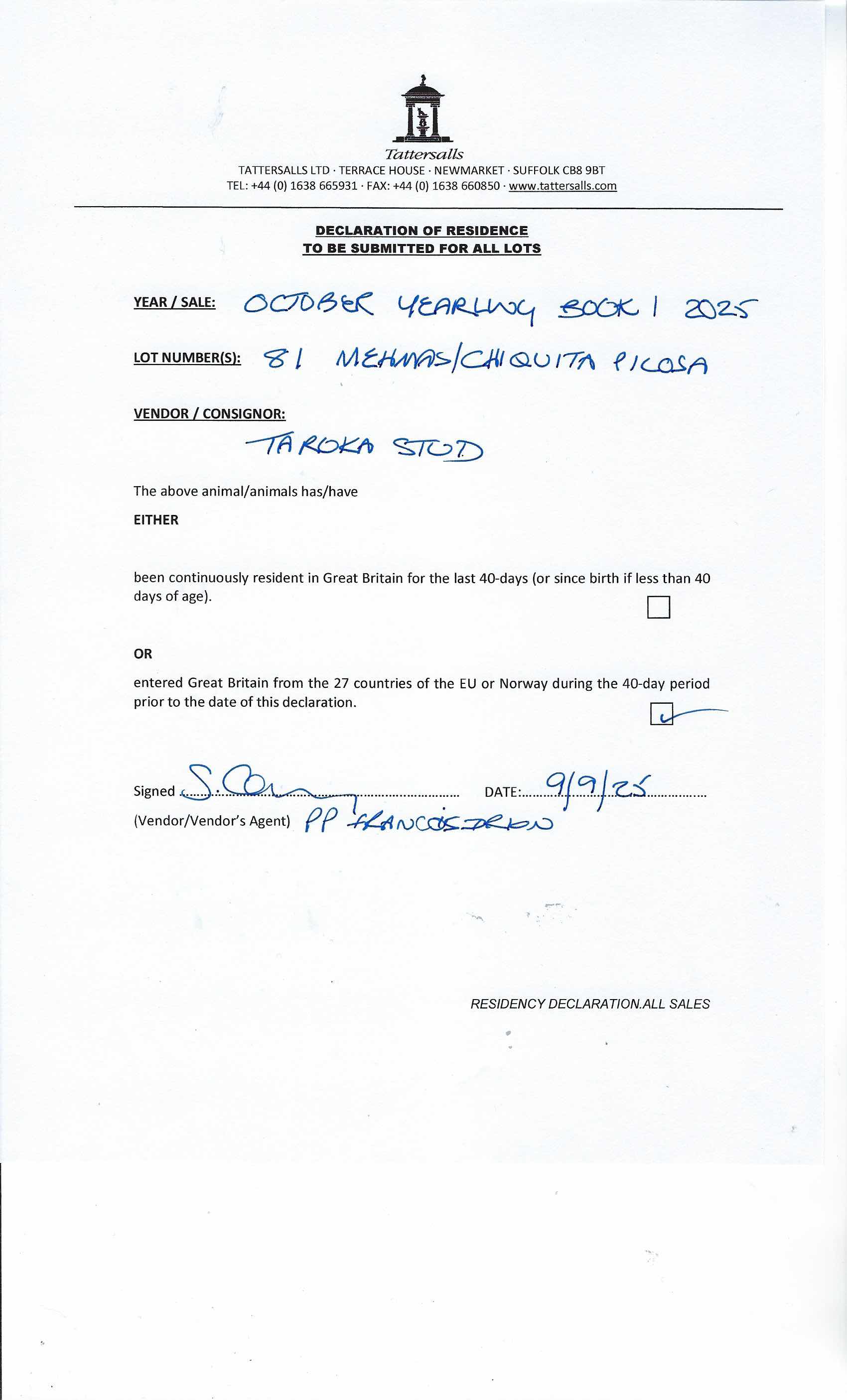 October Yearling Sale, Book 2 2016 lot 1296 F. by Exchange Rate (USA) 2015, Taroka Stud, Ireland=>Vendor 22,000 gns