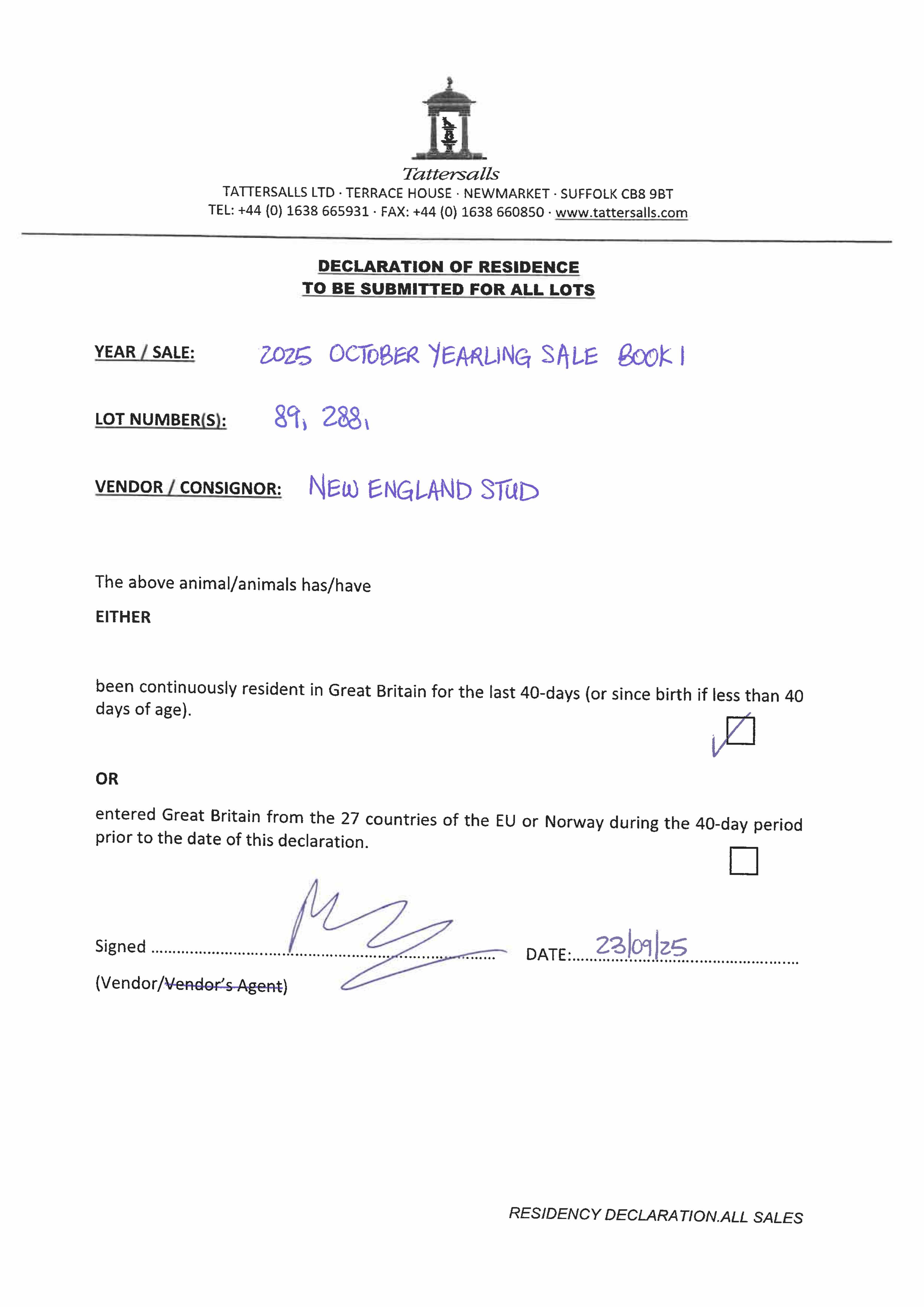Consignor: New England Stud