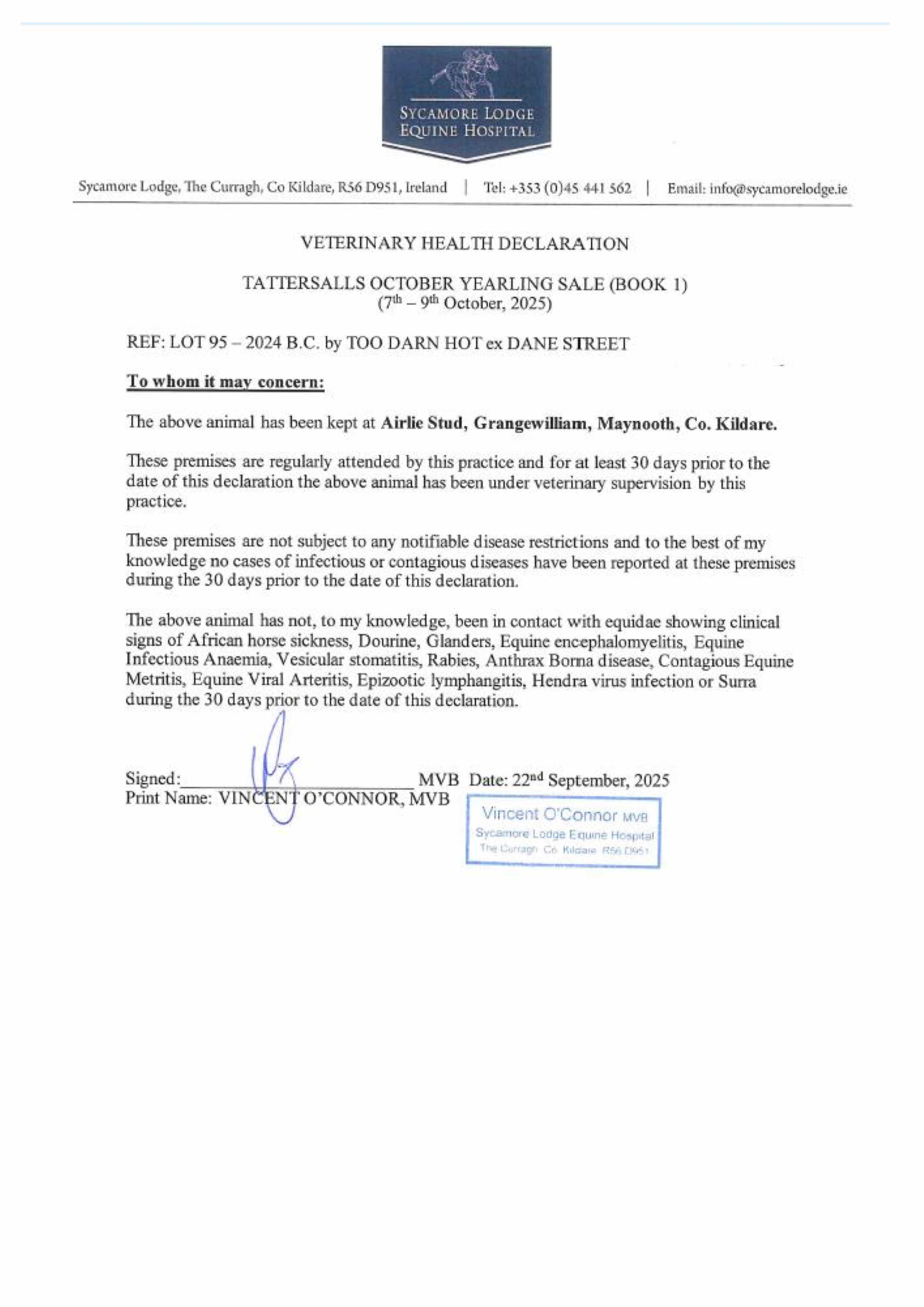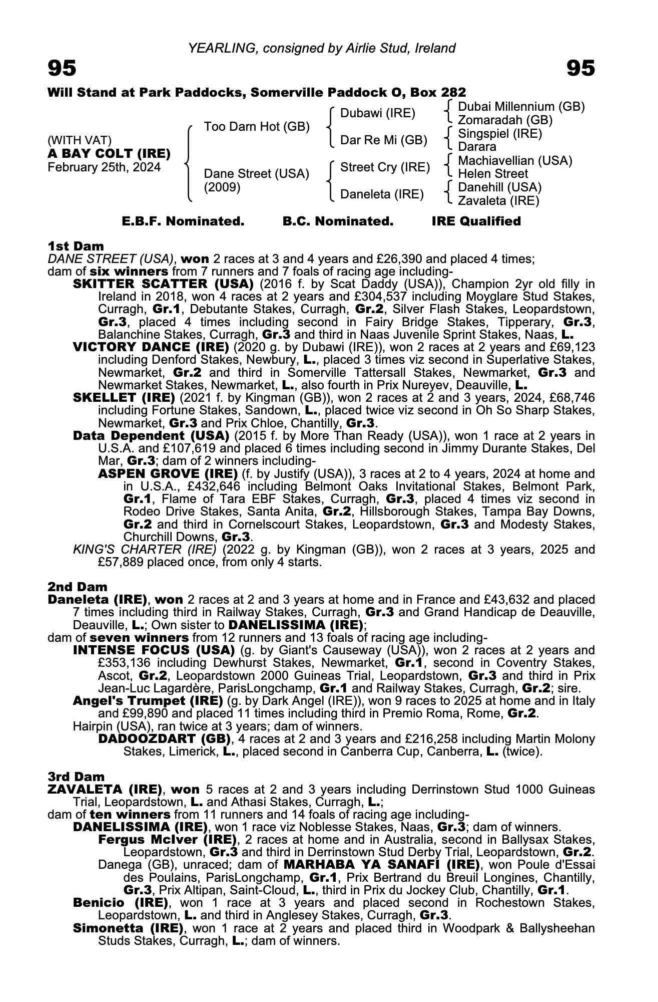 Under 2nd dam, Flora Danica (IRE), dam of: CONSENT (IRE), 3 races at 2 and 3 years, 2025 at home and in France and £214,029 including Prix de Royallieu, ParisLongchamp, Gr.1 and second in Prix Minerve, Deauville, Gr.3.