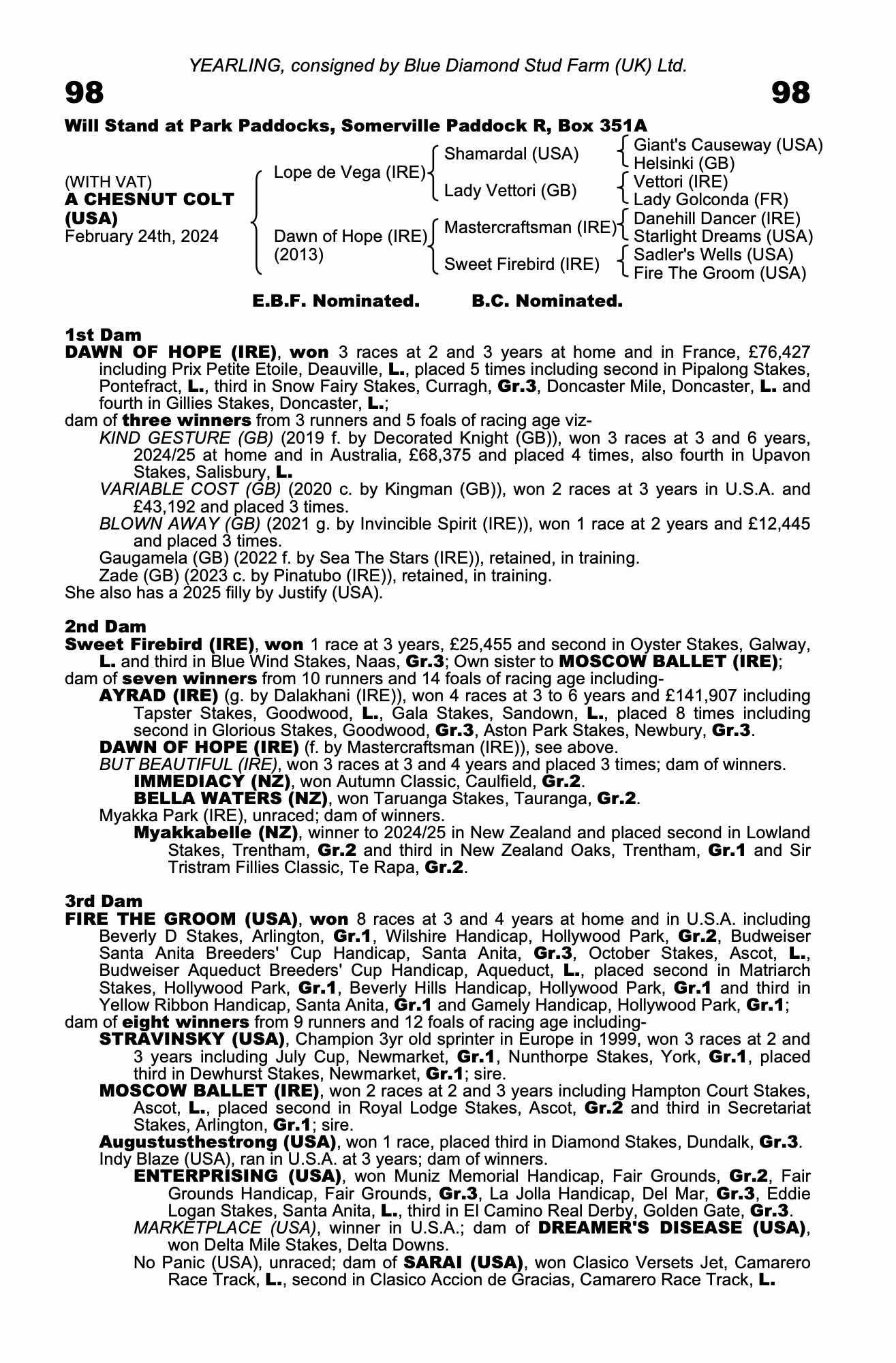 Consignor: Blue Diamond Stud Farm (UK) Ltd.