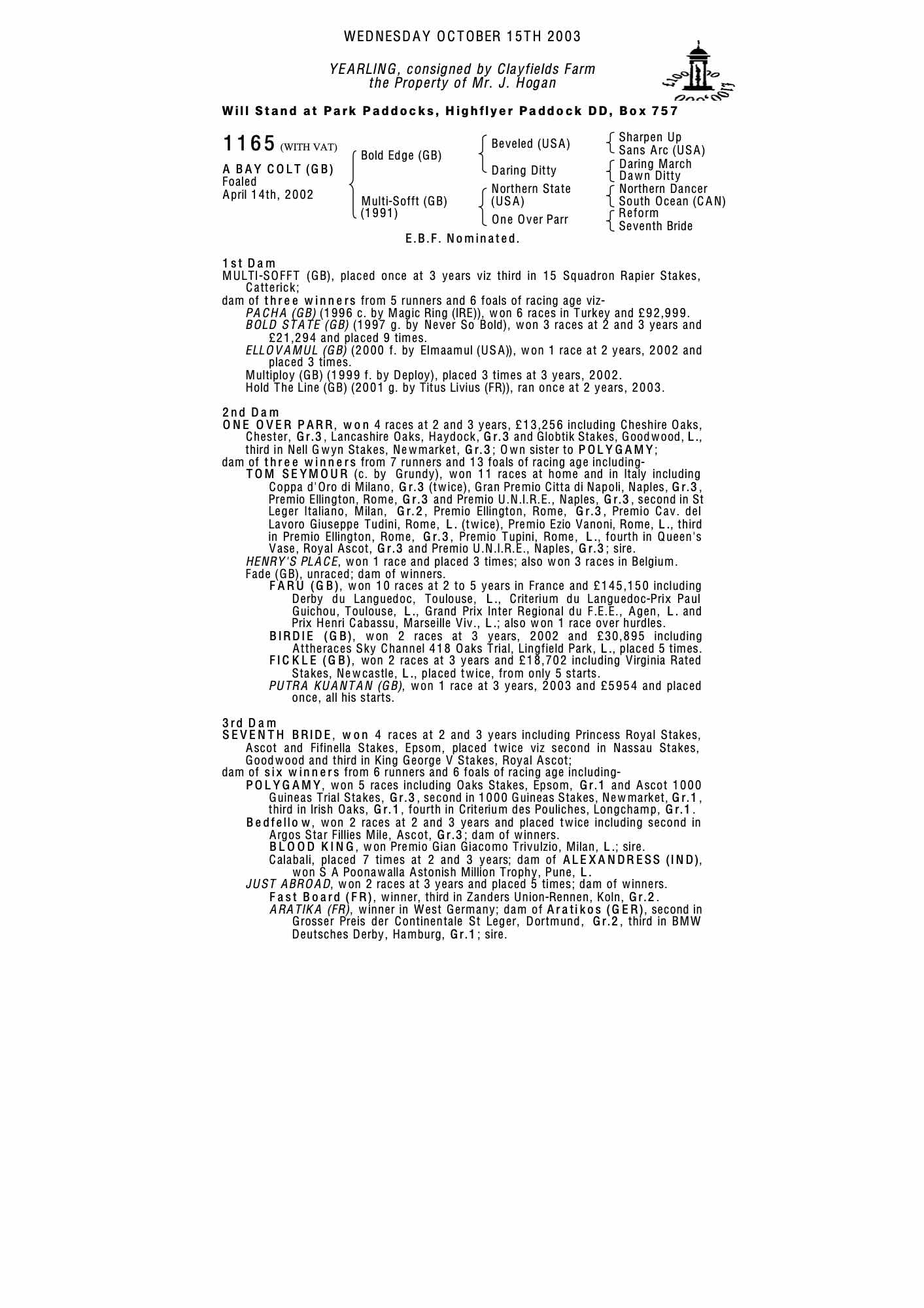 Autumn Yearling Sale 2001 lot 1521 F. by Elmaamul (USA) , Clayfields Farm=>Vendor 1,200 gns
