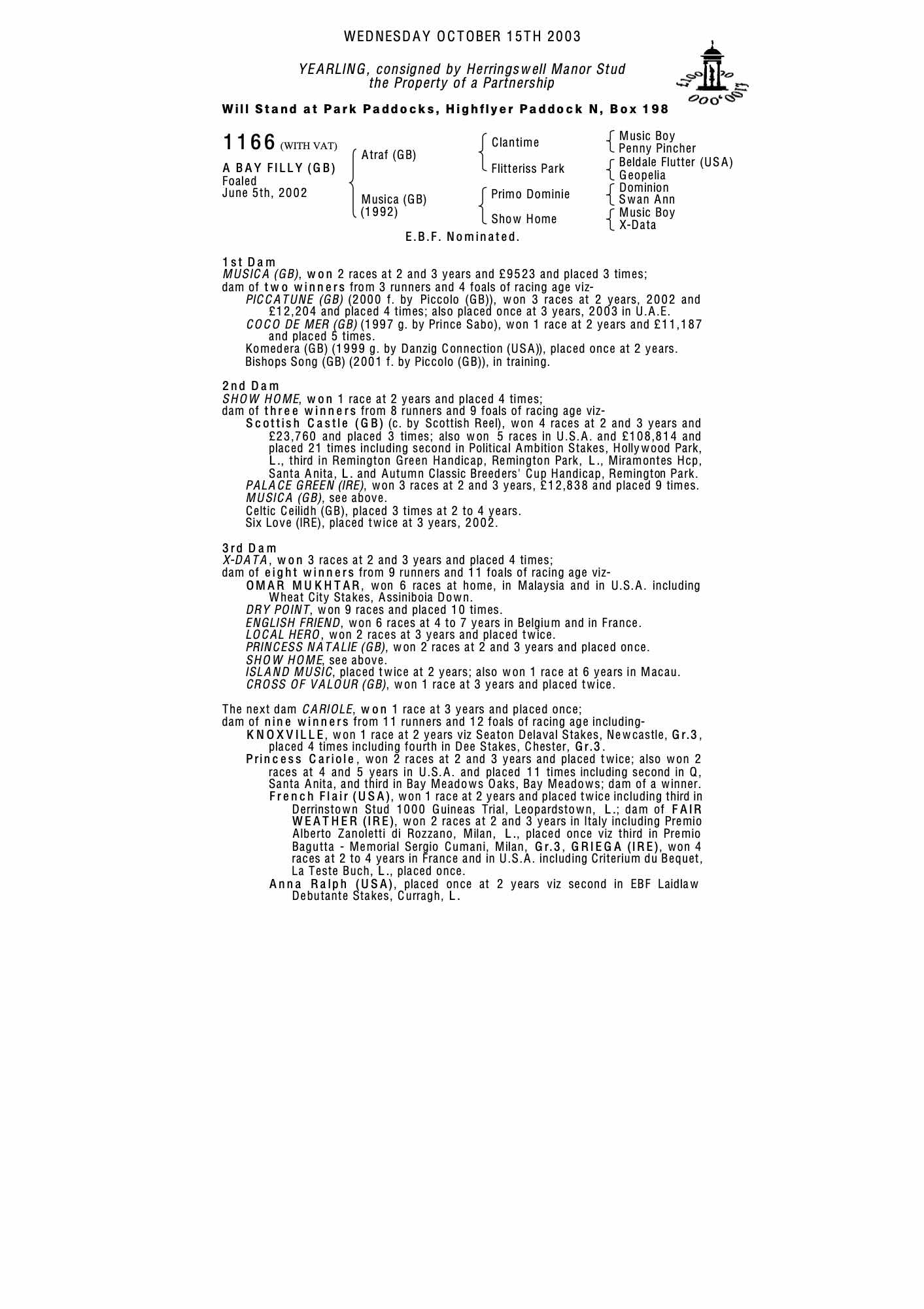 Autumn Yearling Sale 2002 lot 1674 F. by Piccolo (GB) 2001, Herringswell Manor Stud=>Quinlan Bros 2,200 gns