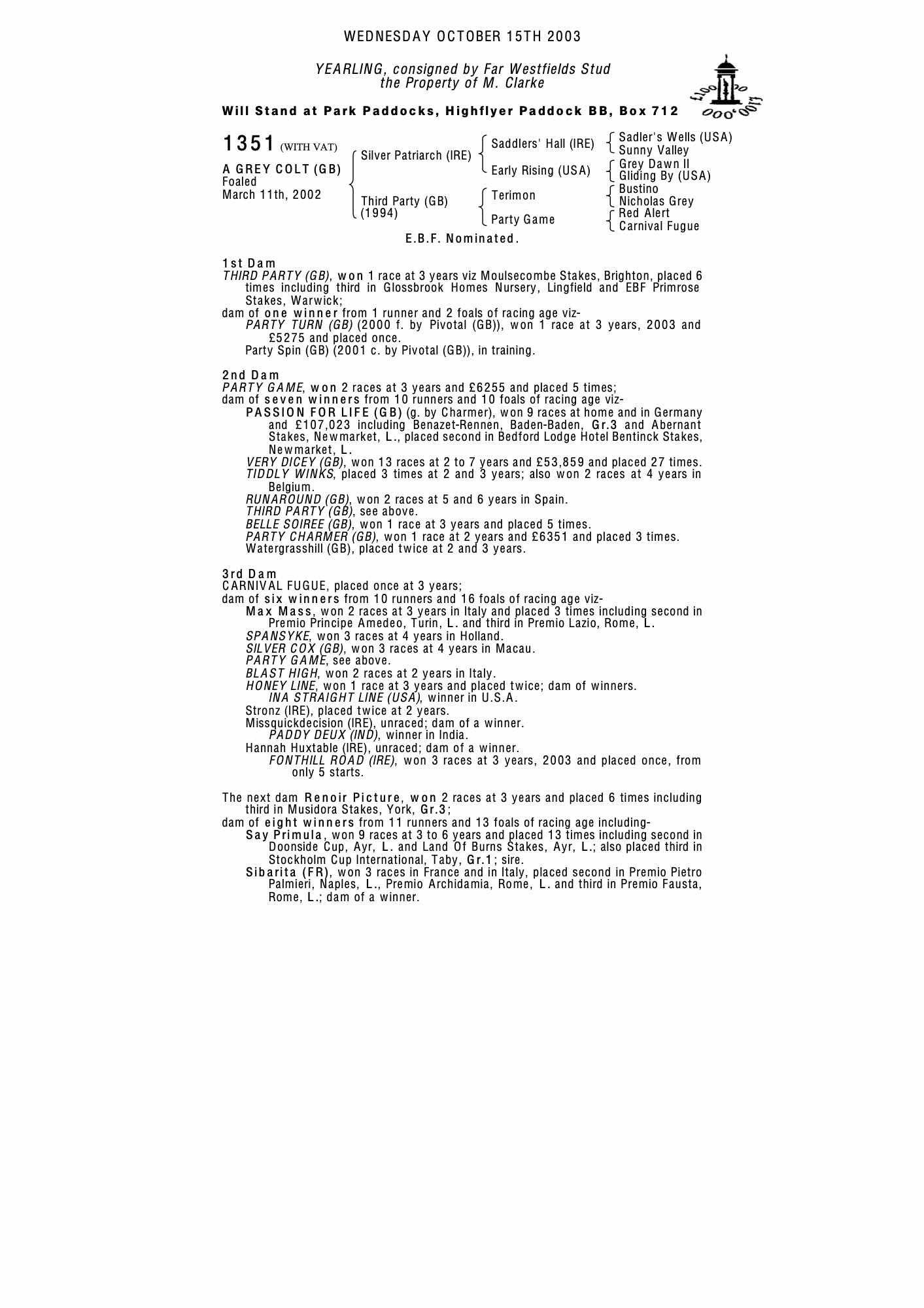 October Yearling Sale 2002 lot 894 C. by Pivotal (GB) 2001, Far Westfields Stud=>Vendor 70,000 gns