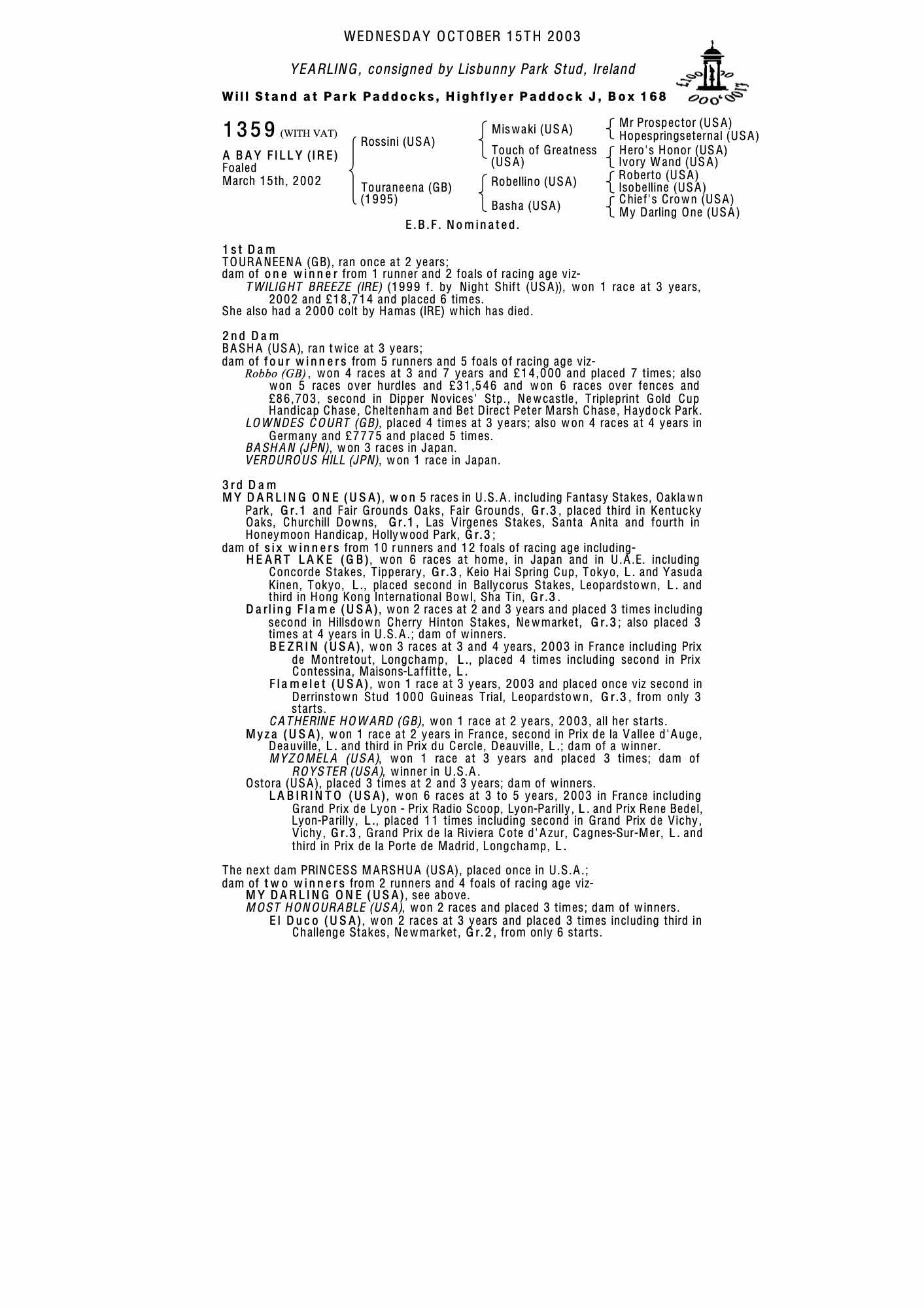 December Mare Sale 2003 lot 1618 Twilight Breeze (IRE) (F. by Night Shift (USA)), Glebe House Stables, Ireland=>Lot Not Sold 9,500 gns