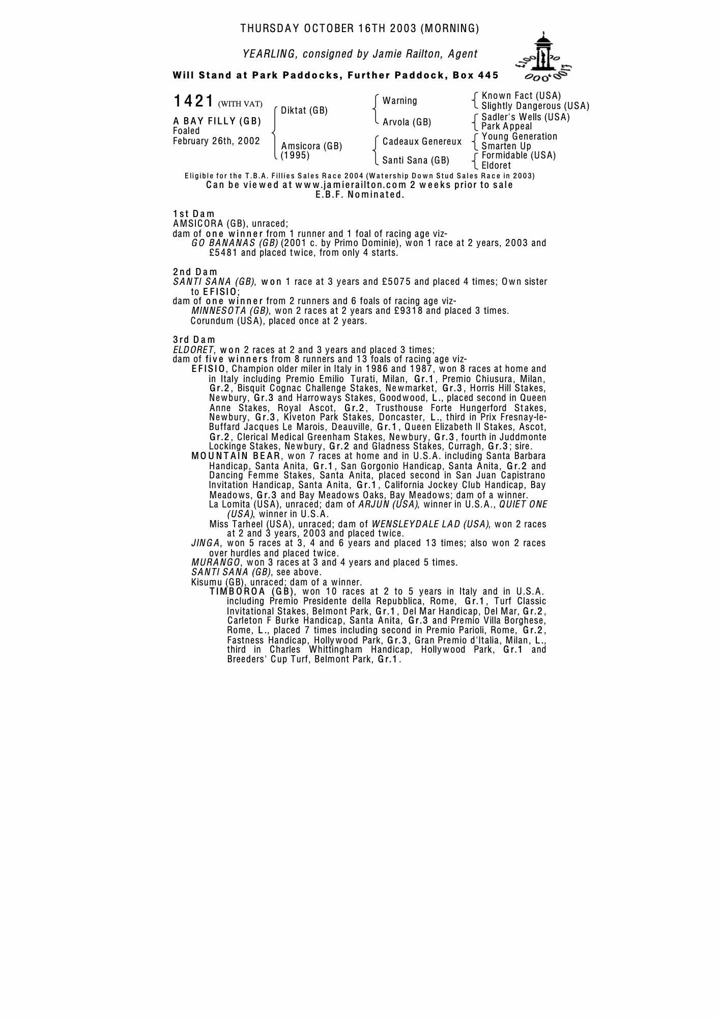 Consignor: Jamie Railton, Agent