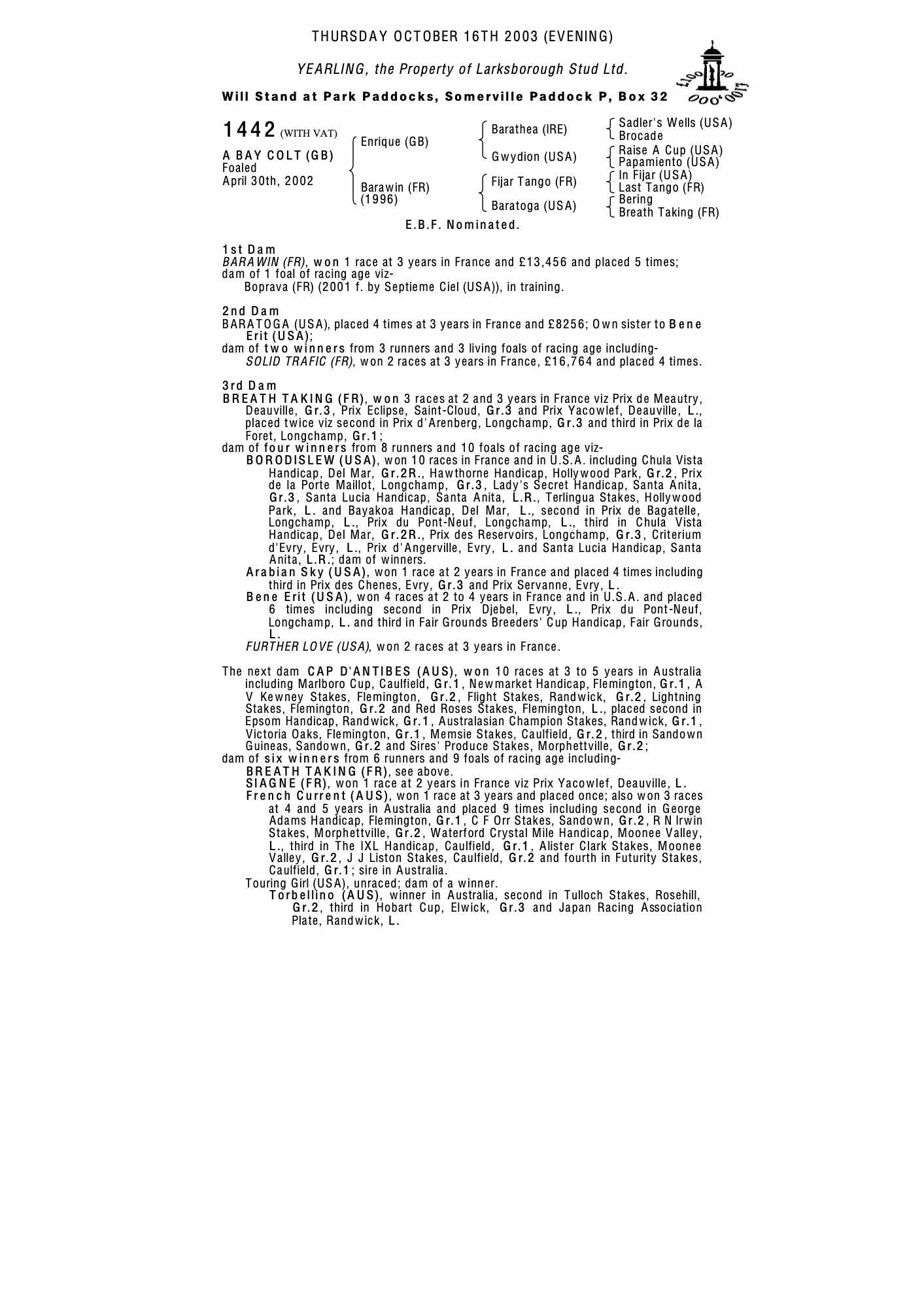 October Yearling Sale, Book 3 2010 lot 2130 C. by Compton Place (GB) 2009, Jarosa Stud=>Vendor 800 gns