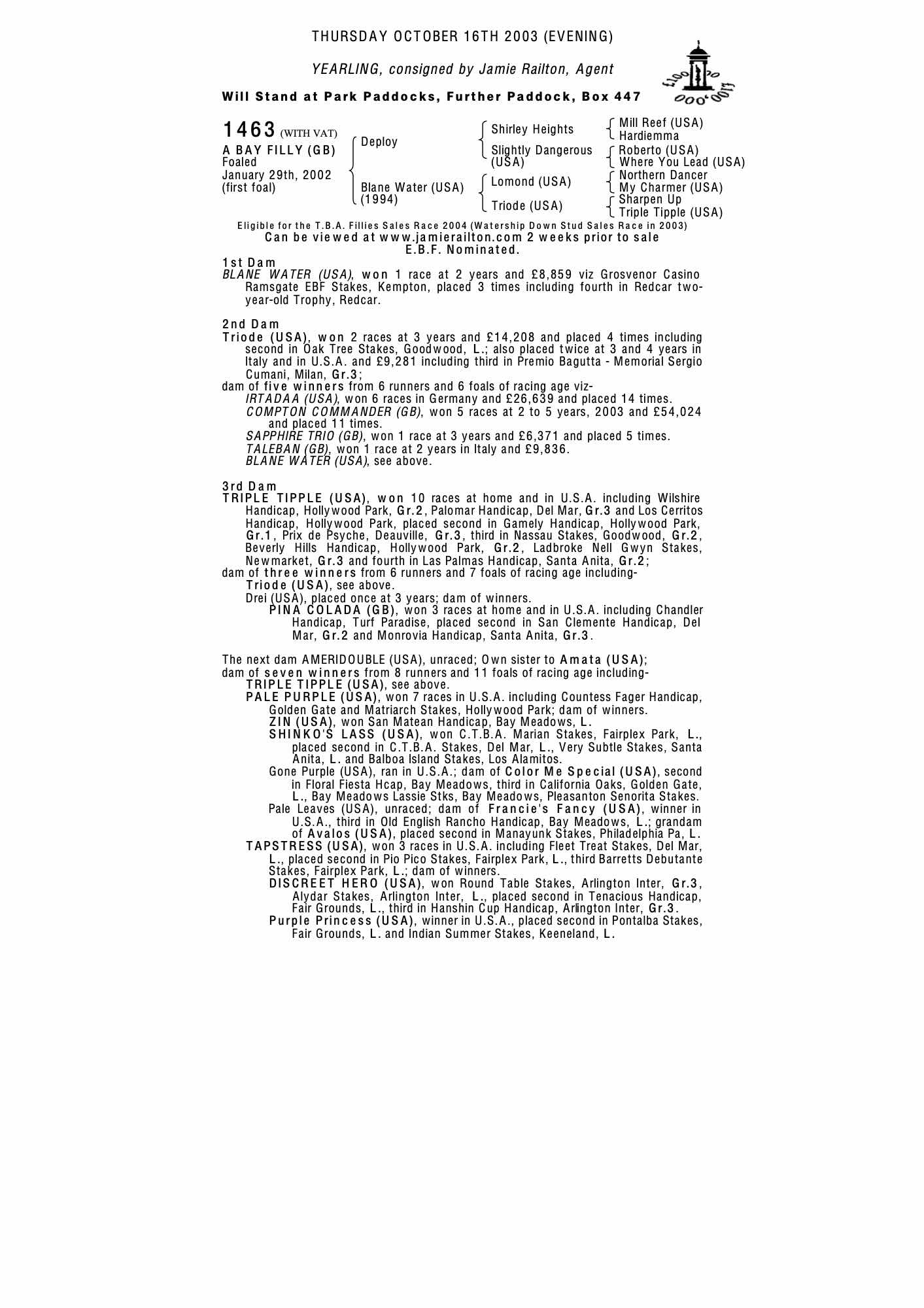 Consignor: Jamie Railton, Agent