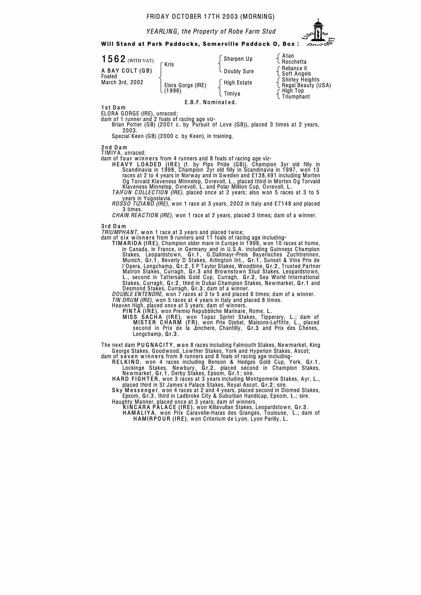 Autumn Yearling Sale 2001 lot 1665 C. by Keen , Robe Farm Stud=>Vincenzo De Siero 1,400 gns