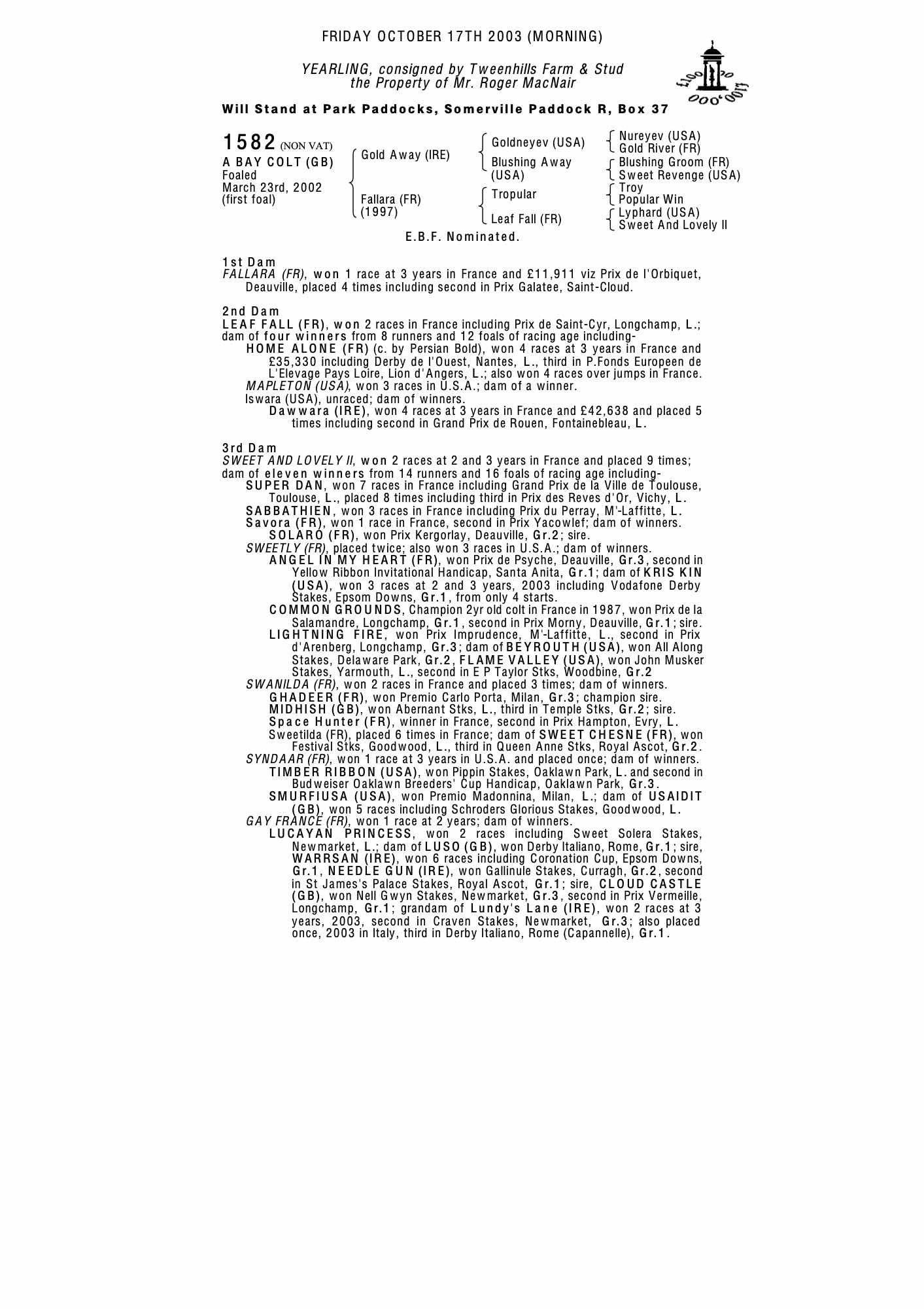 October Yearling Sale, Book 2 2005 lot 1033 C. by Tomba (GB) 2004, Geoffrey Deacon Bloodstock=>Blandford Bloodstock 10,000 gns