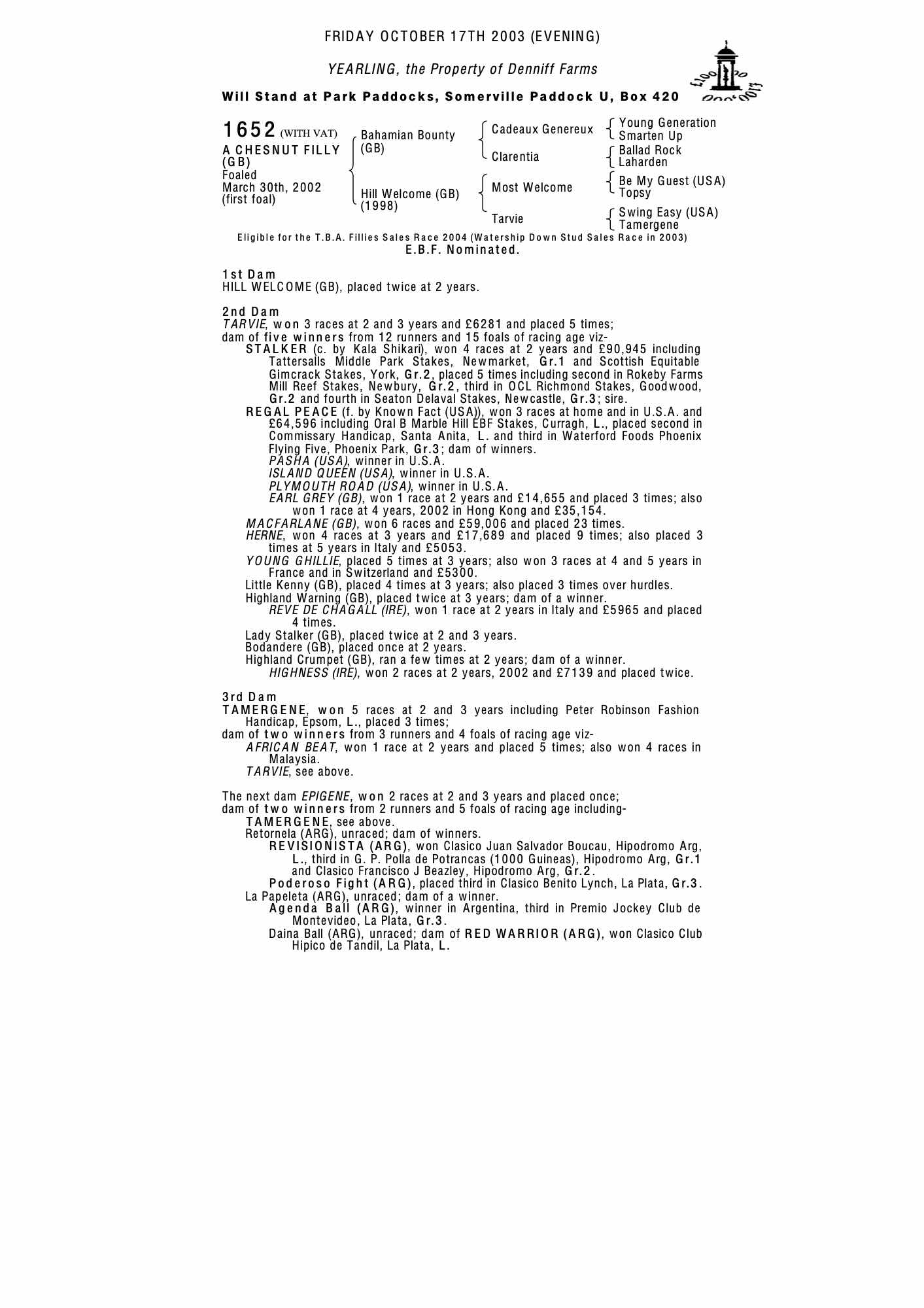 October Yearling Sale, Book 2 2008 lot 1399 C. 2007, Denniff Farms=>McKeever St Lawrence 50,000 gns