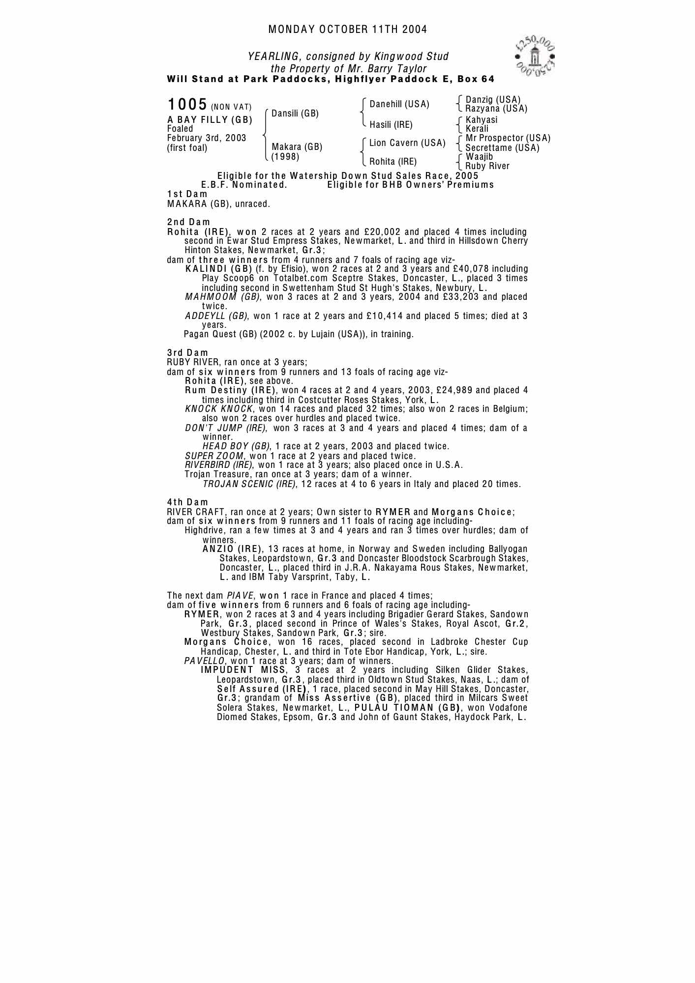 December Foal Sale 2005 lot 736 F. by Efisio 2005, Kingwood Stud=>Bloodstock 2005 39,000 gns