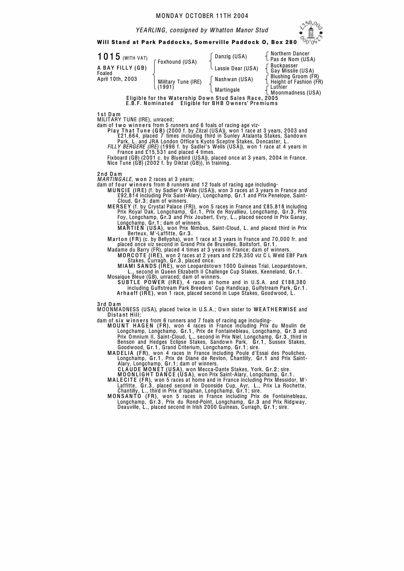 October Yearling Sale, Book 1 2003 lot 539 F. by Diktat (GB) 2002, Whatton Manor Stud=>Darley Stud Management 23,000 gns