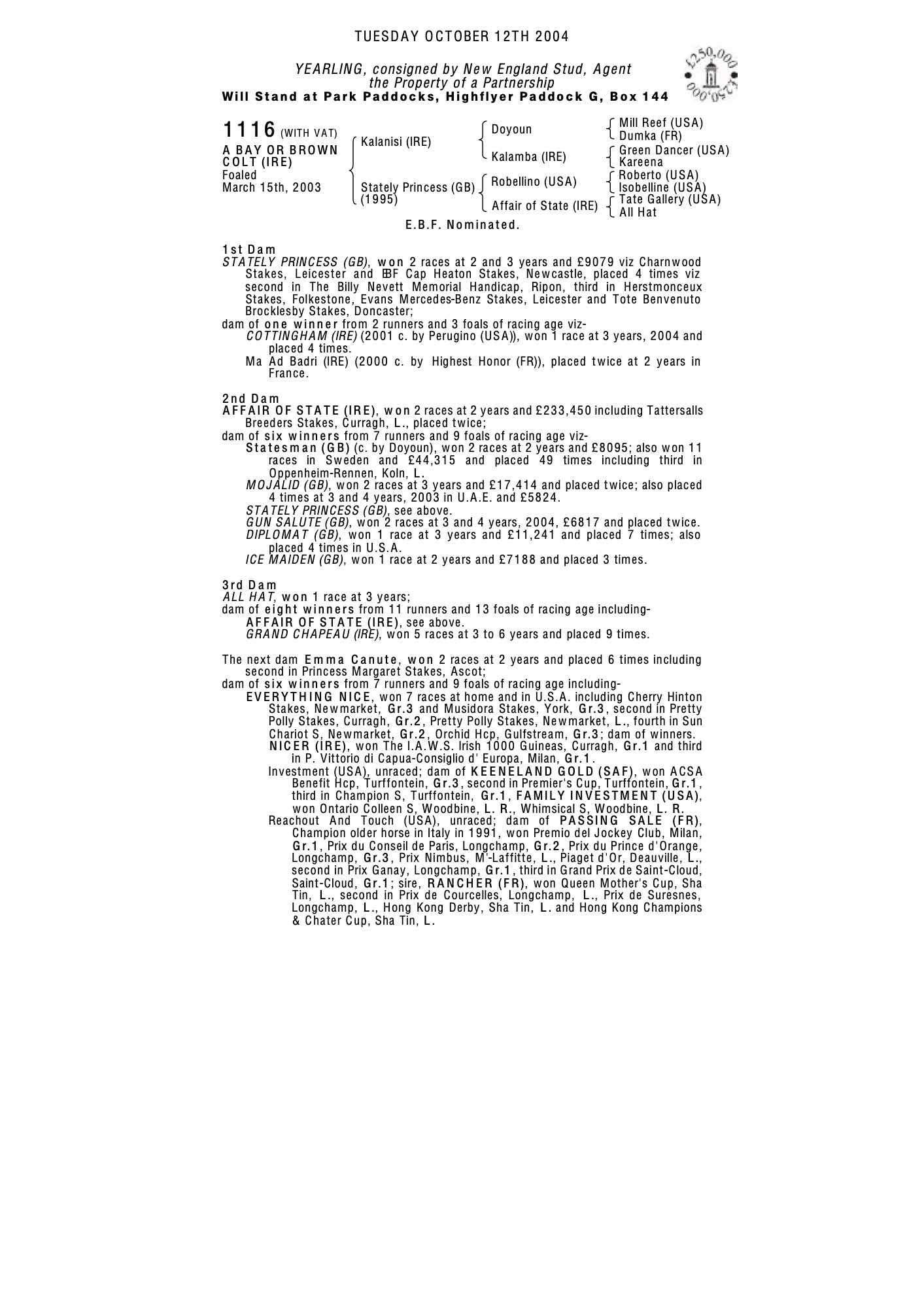 December Foal Sale 2003 lot 760, Meadowlands Stud (Co. Down)=>Blandford Bloodstock 30,000 gns