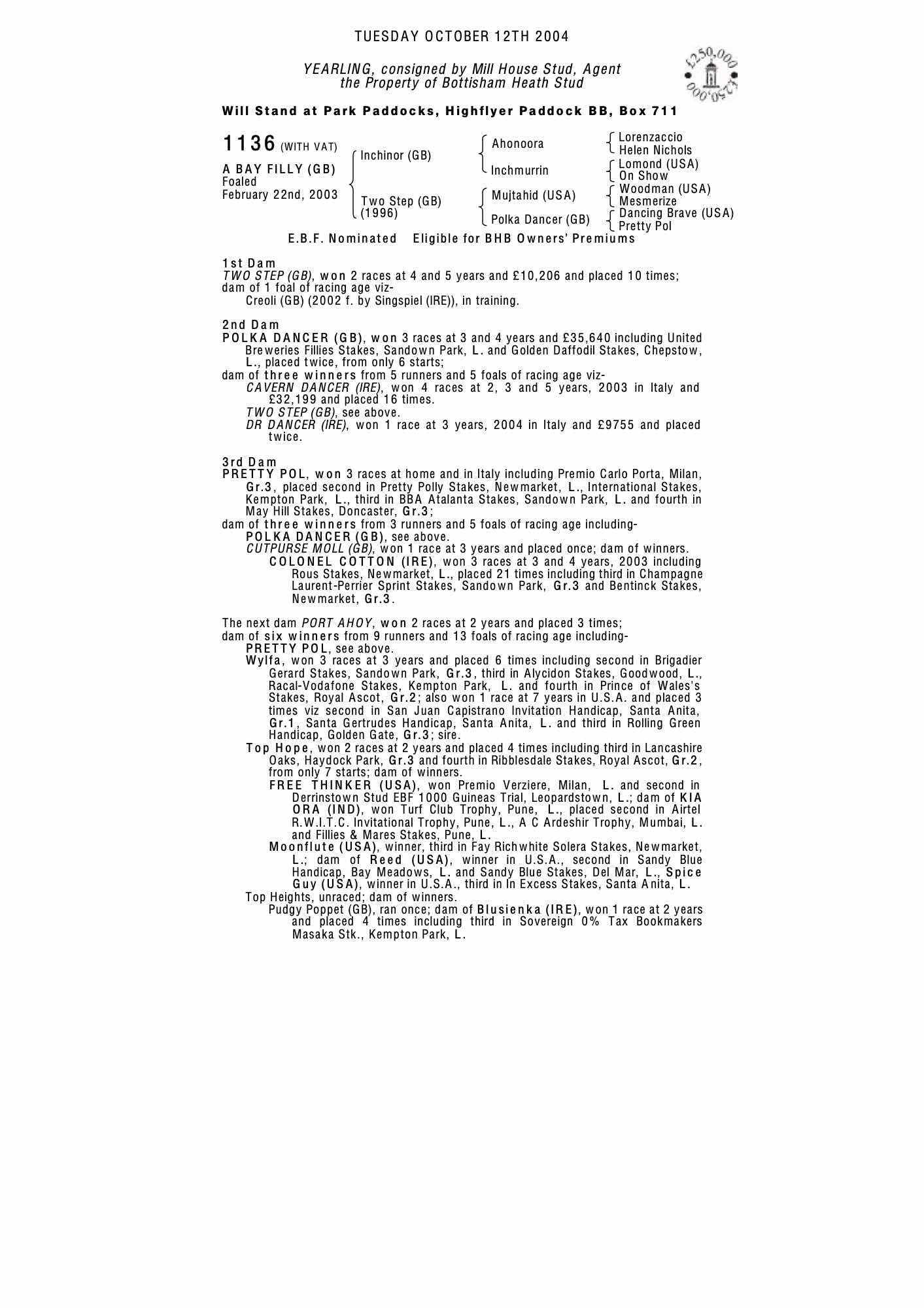 October Yearling Sale, Book 1 2003 lot 658 F. by Singspiel (IRE) 2002, Bottisham Heath Stud=>Blandford Bloodstock 32,000 gns