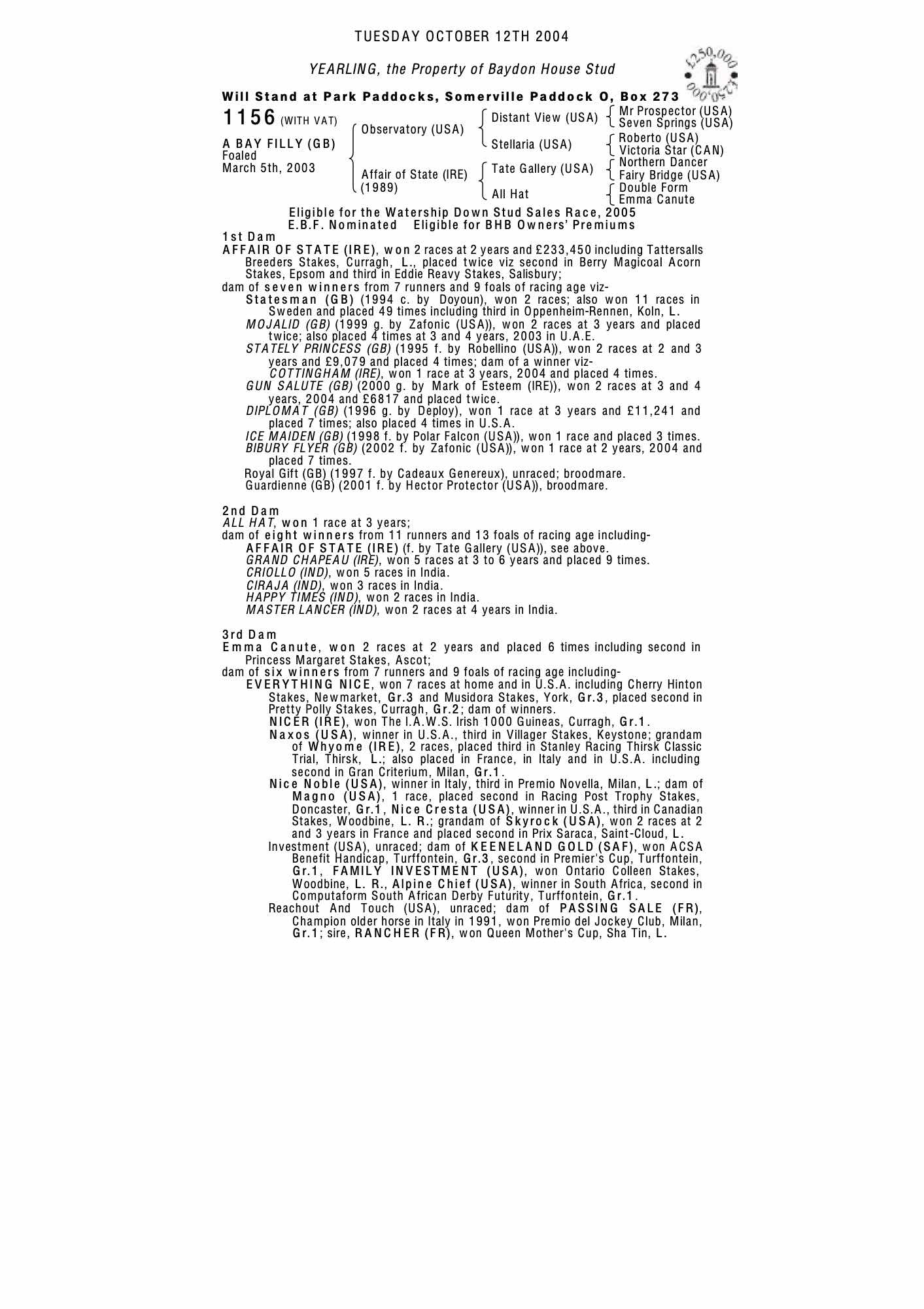 December Foal Sale 2005 lot 1273 C. by Oasis Dream (GB) 2005, Baydon House Stud=>Emerald Bloodstock 17,500 gns
