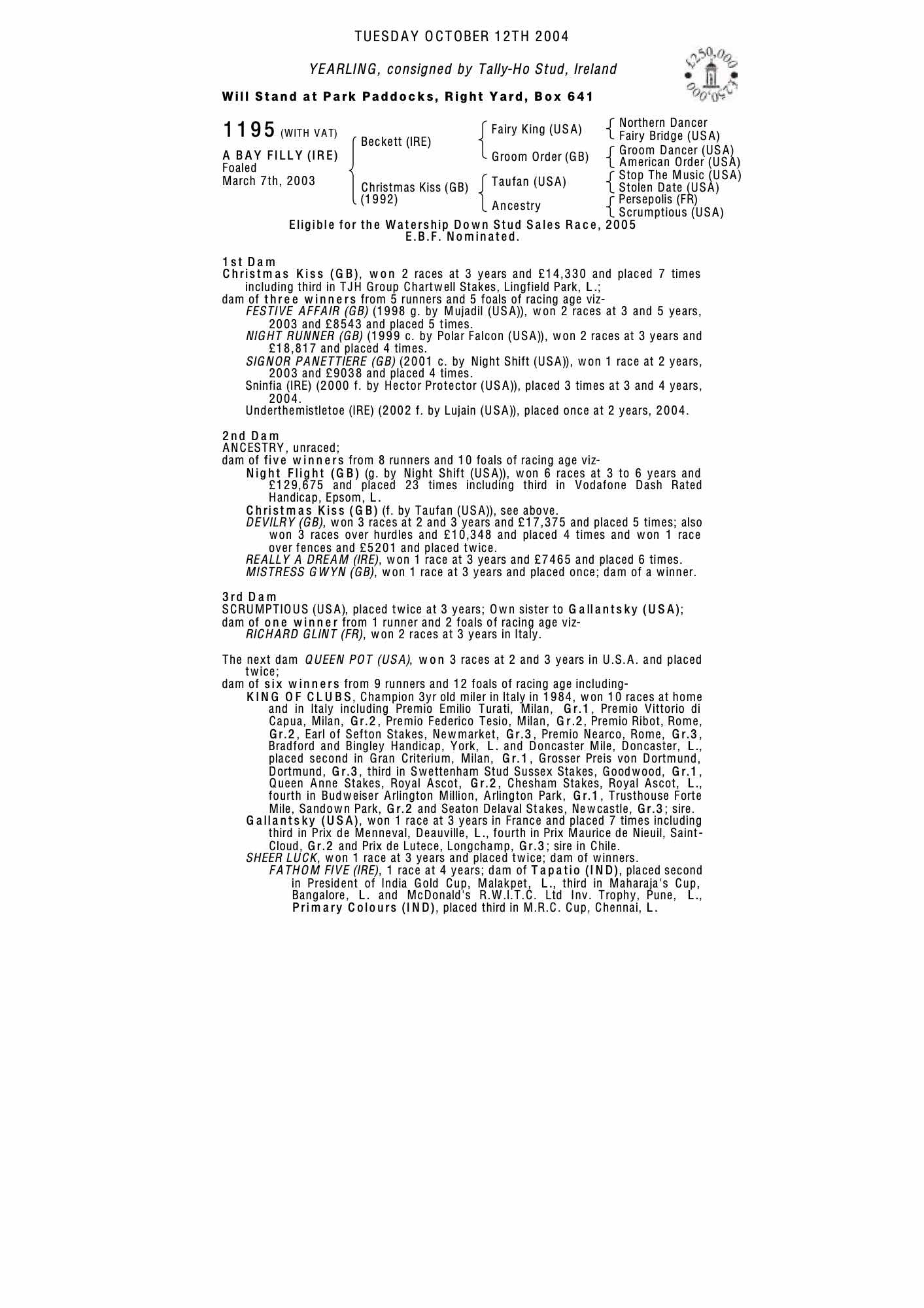 October Yearling Sale 2001 lot 316 F. by Hector Protector (USA) , Genesis Green Stud=>Conti Bloodstock Services 35,000 gns