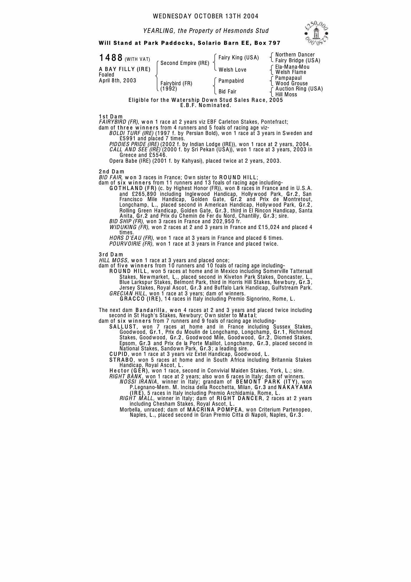 December Foal Sale 2003 lot 723, Meadowlands Stud (Co. Down)=>Penny Barnes 2,000 gns