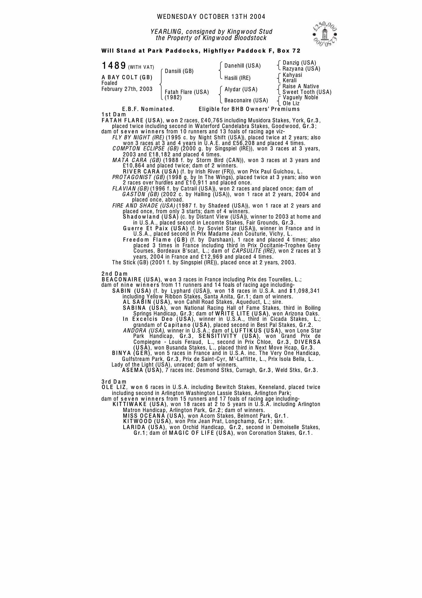 October Yearling Sale, Book 2 2005 lot 1448 F. by Fraam (GB) 2004, Kingwood Stud=>C Martyn Meade 11,000 gns