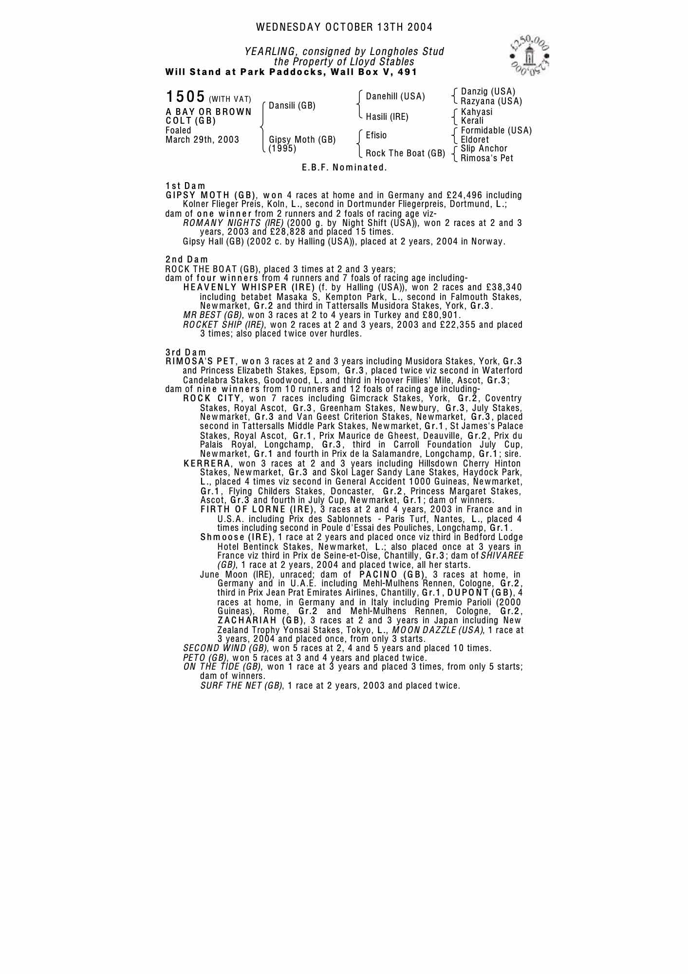 December Foal Sale 2004 lot 845 F. by Halling (USA) 2004, Jamie Railton, Agent=>Damian Burns 20,000 gns