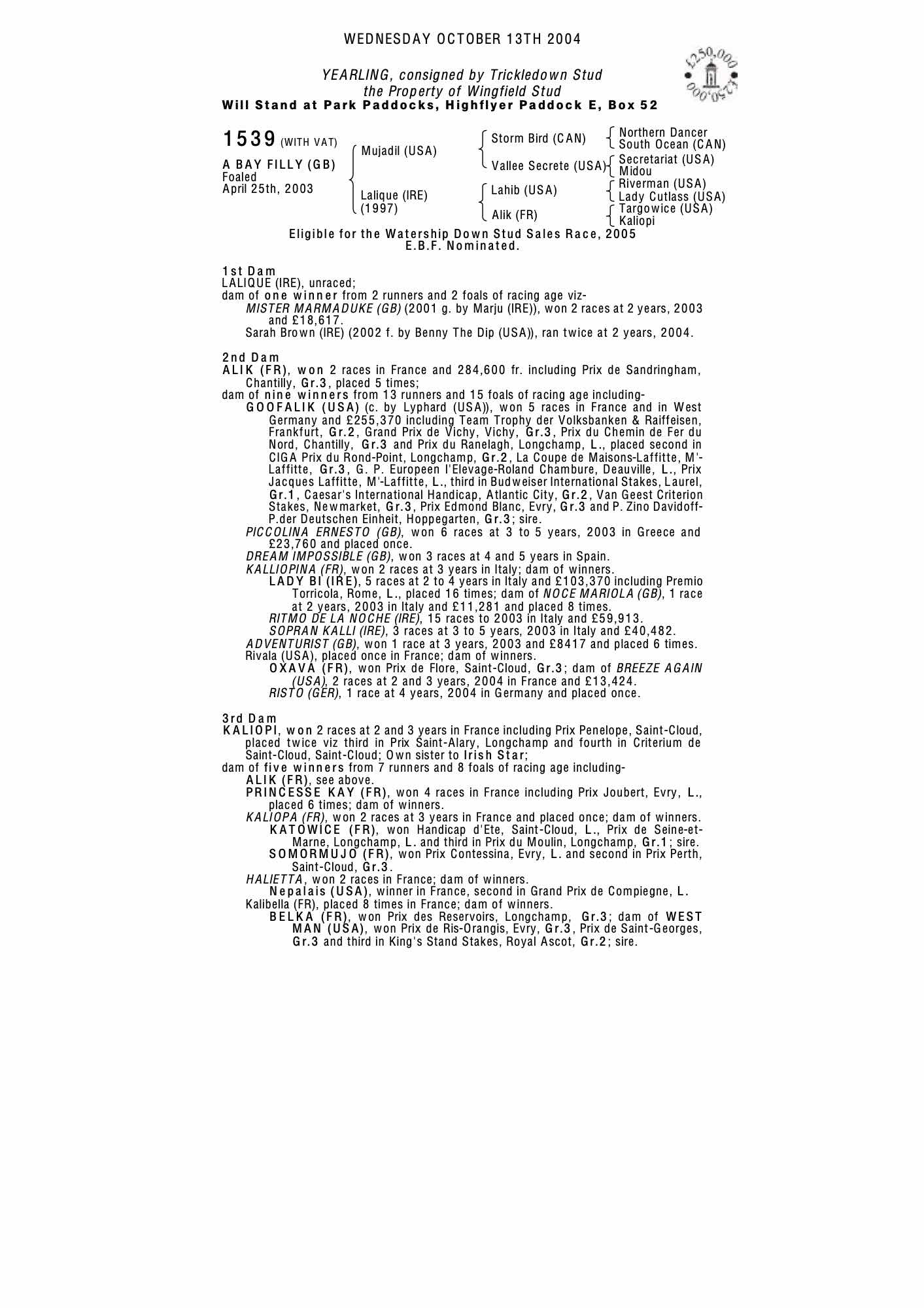 December Foal Sale 2005 lot 1517 F. by Where Or When (IRE) 2005, Westerlands Stud=>Vendor 6,000 gns