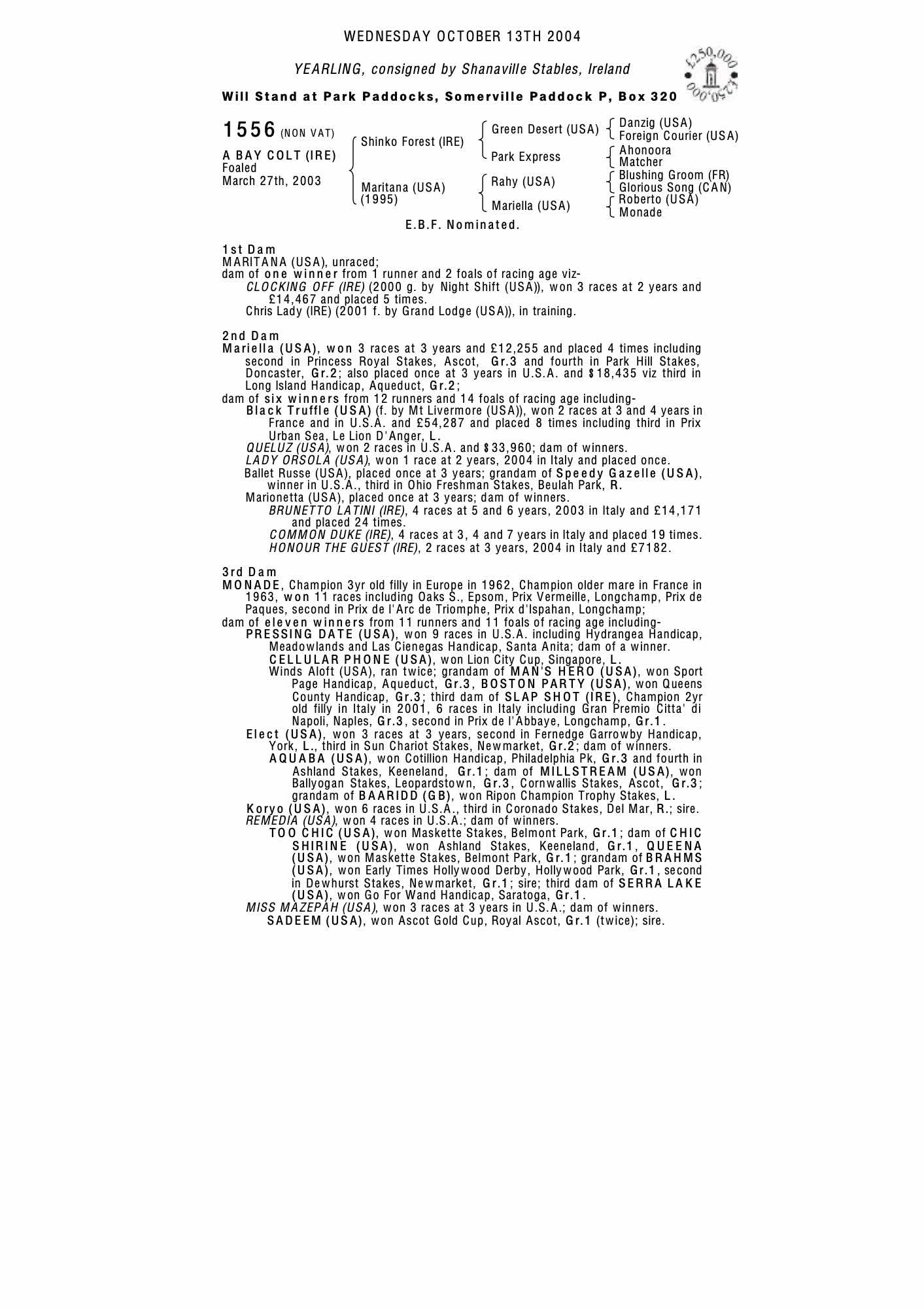 December Foal Sale 2000 lot 688 C. by Night Shift (USA) , Maryville Stud, Ireland=>Lot Not Sold 7,500 gns
