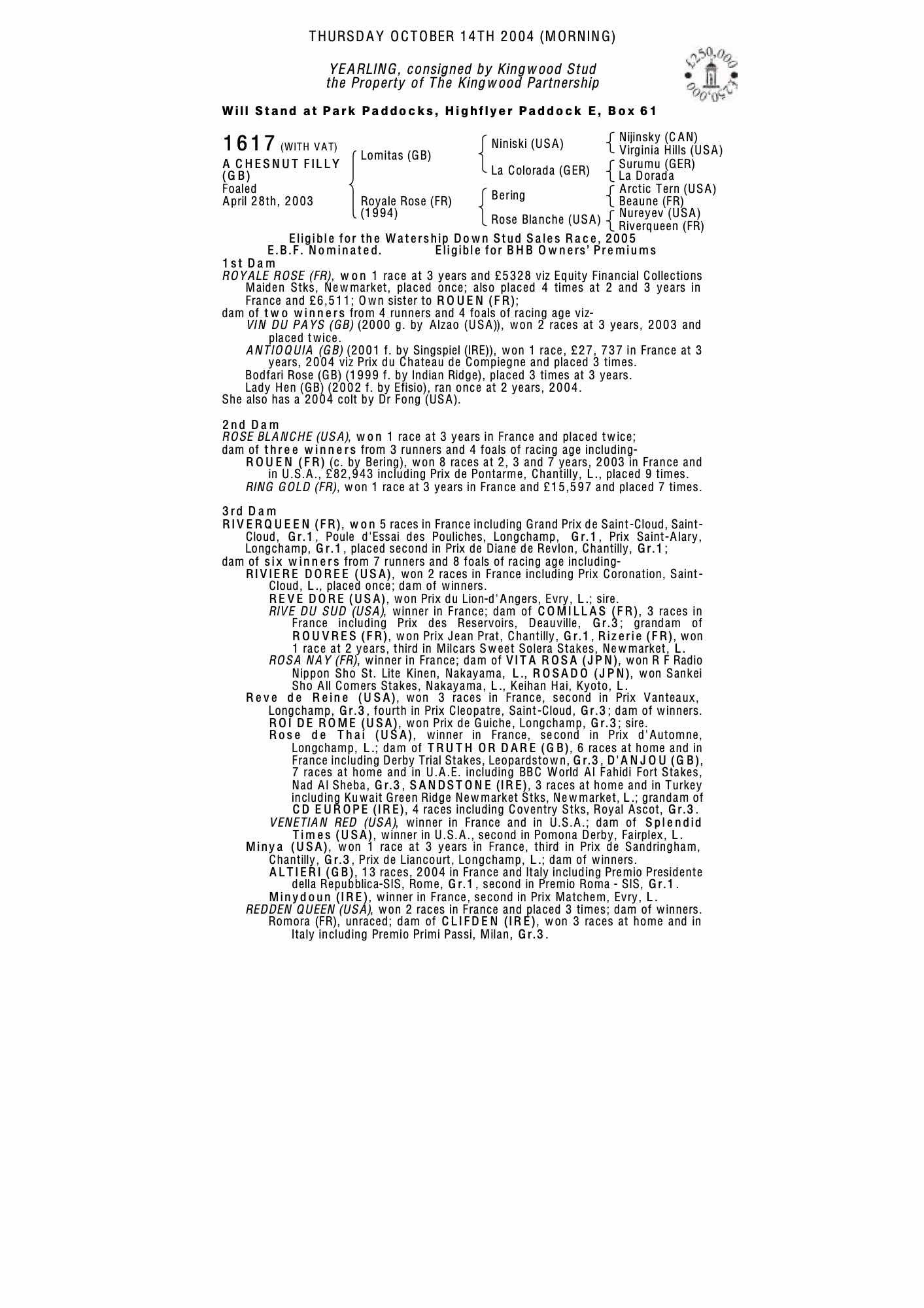 October Yearling Sale, Book 2 2003 lot 1255 F. by Efisio 2002, Kingwood Stud=>McKeever St Lawrence 20,000 gns