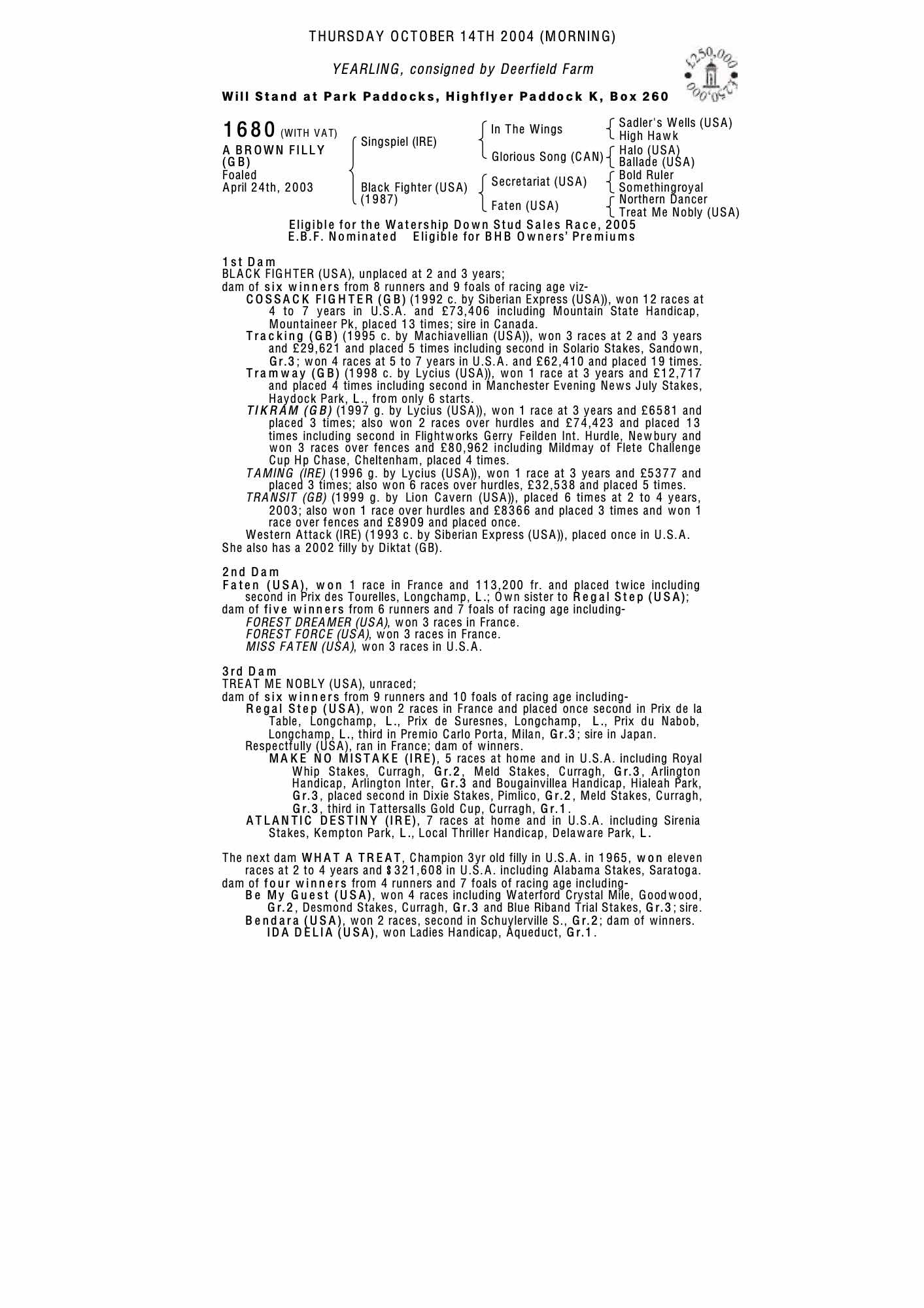 October Yearling Sale, Book 2 2003 lot 1462 F. by Diktat (GB) 2002, Wallhouse Stud=>Eclipse Management 9,500 gns