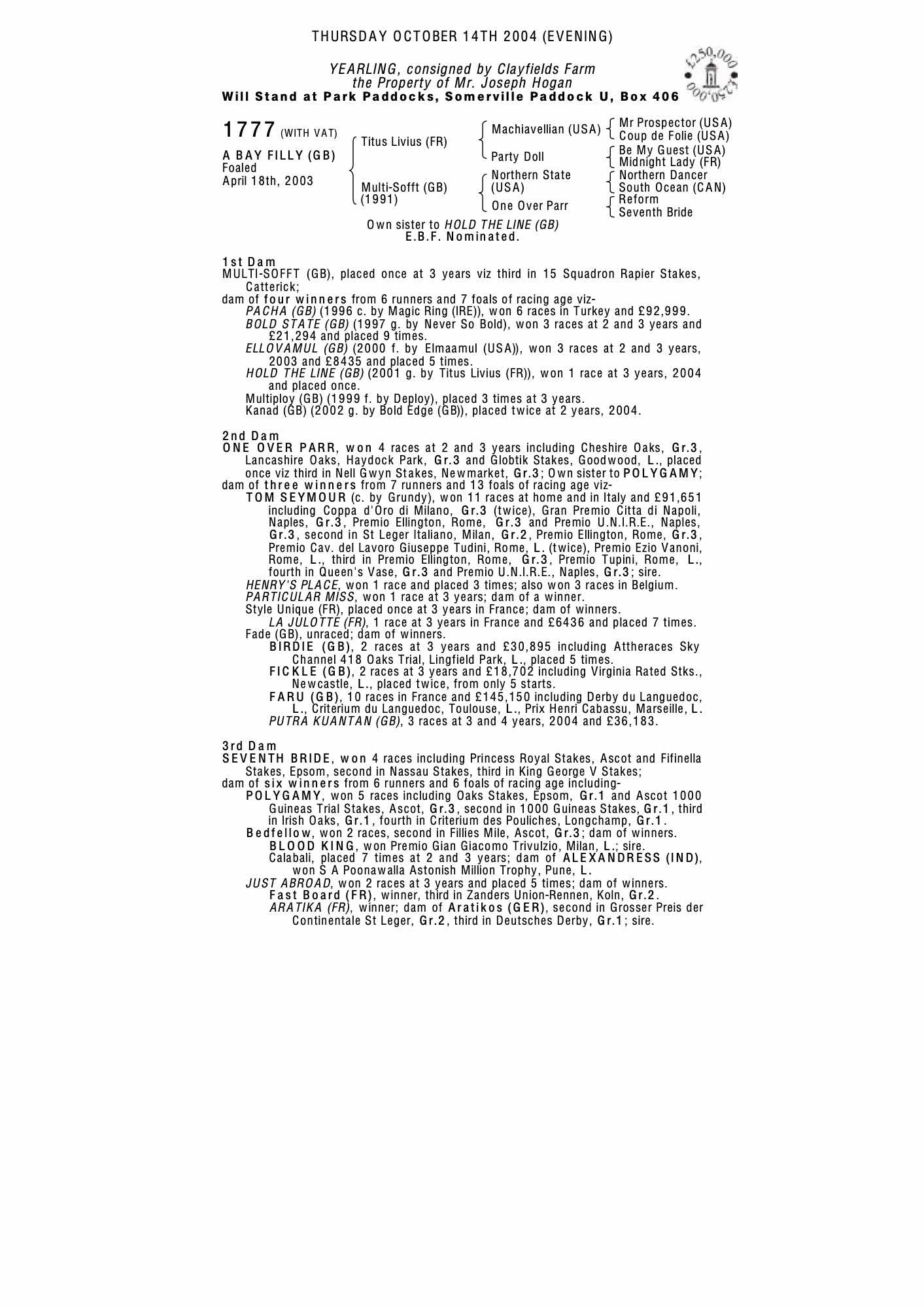 Autumn Yearling Sale 2000 lot 1446 F. by Deploy , Clayfields Farm=>MI Forbes 6,500 gns