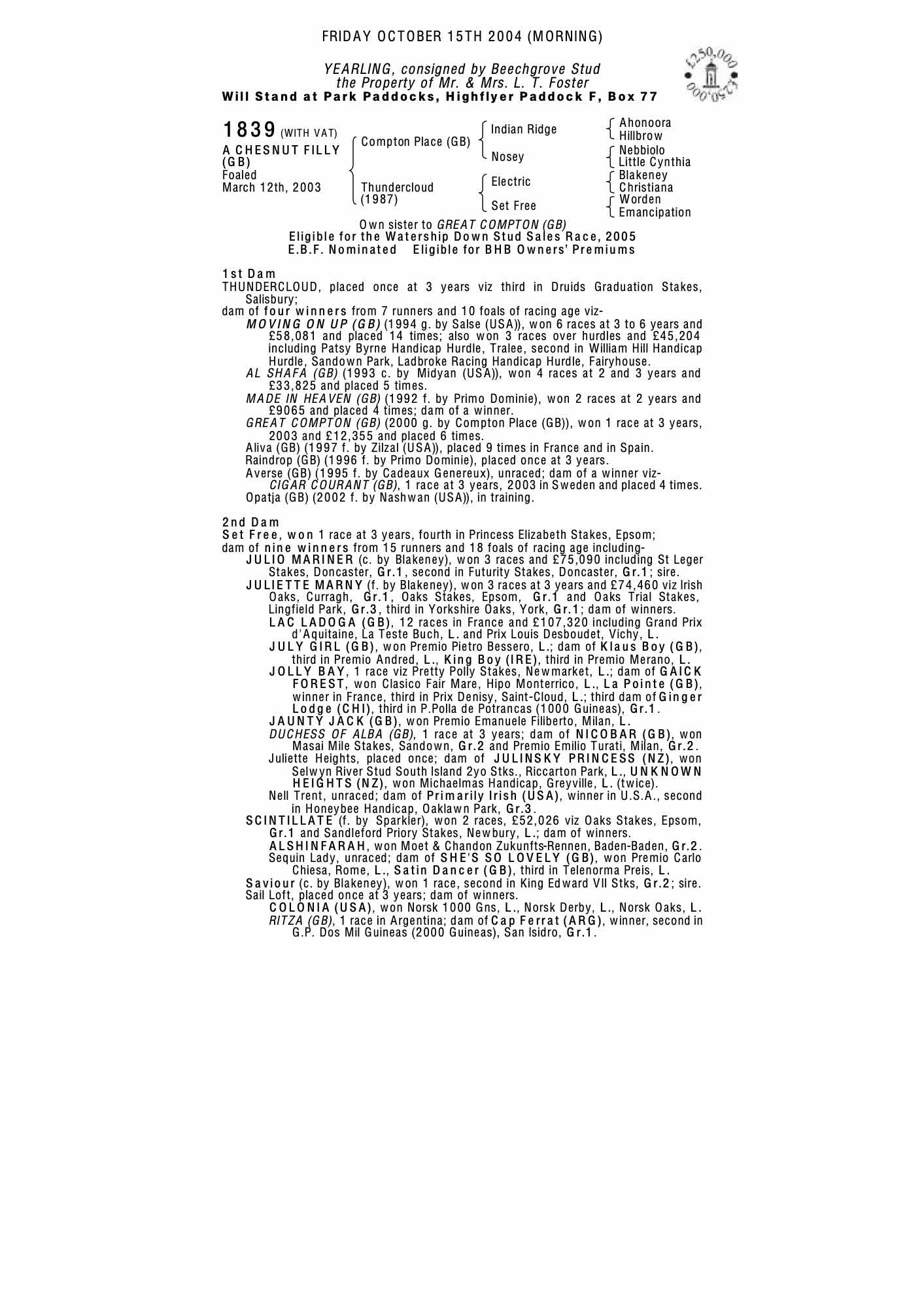 December Foal Sale 2003 lot 627, Fonthill Stud=>LT & M Foster 2,200 gns